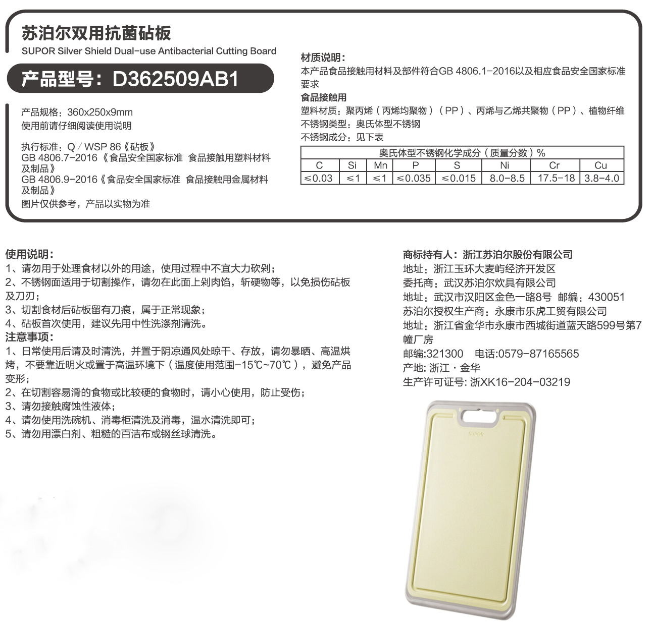 苏泊尔双用抗菌砧板/D362509AB1(单位:个) 无香型