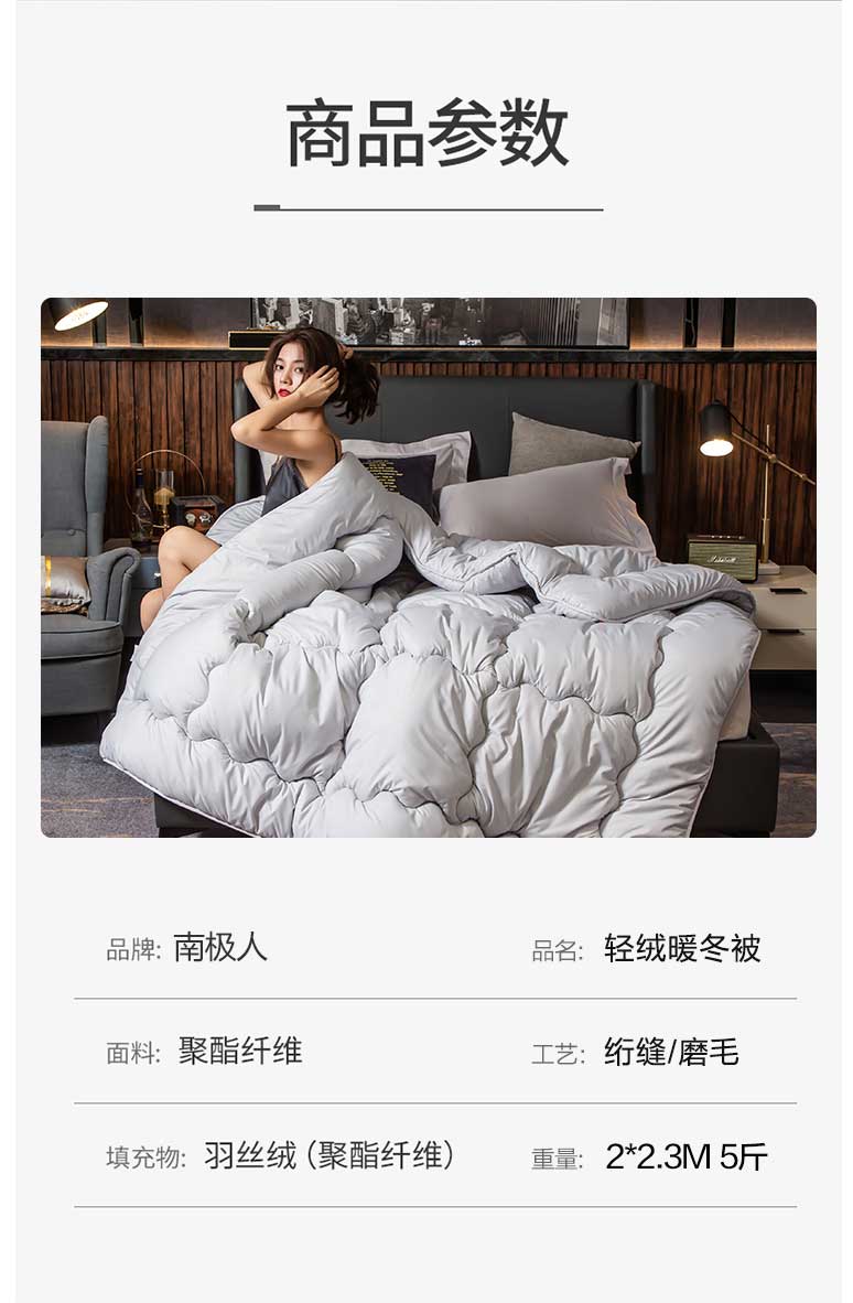 南极人羽丝绒保暖被子 秋冬被200*230CM 5斤(单位:床) 灰色