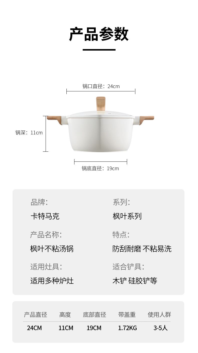 卡特马克(Cate-Maker)枫叶系列汤锅GYL-FY24TB 24CM(个)月光白 本白色