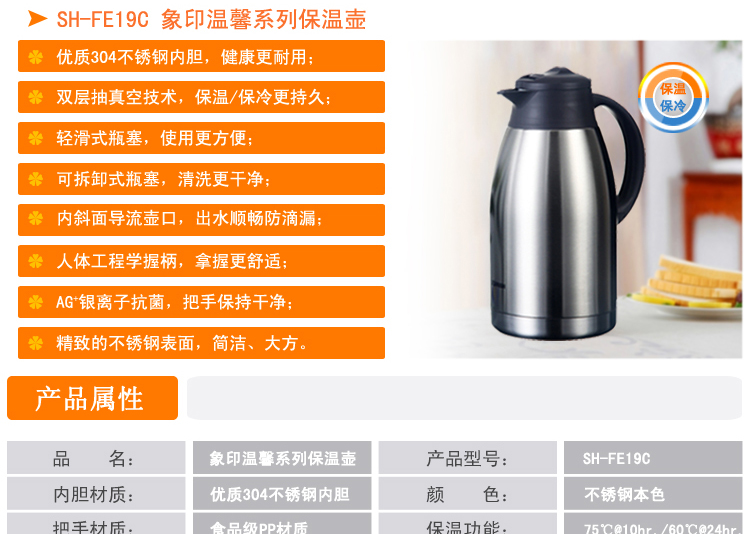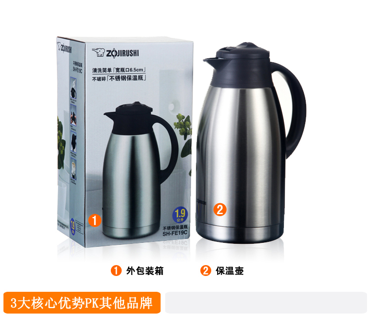 象印 1.9L不锈钢保温壶 SH-FE19C(单位:个) 不锈钢色