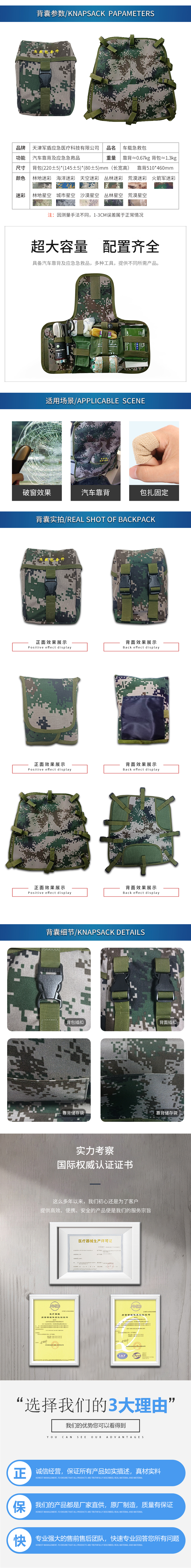 天津军盾应急医疗 车载急救包/车辆驾乘人员自救互救包 车载救援包套装 硬座套+迷彩包 陆军迷彩