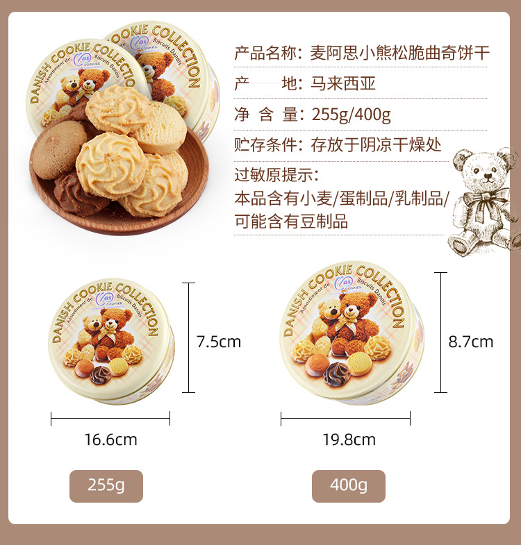 麦阿思小熊松脆曲奇饼干(礼盒装)400g