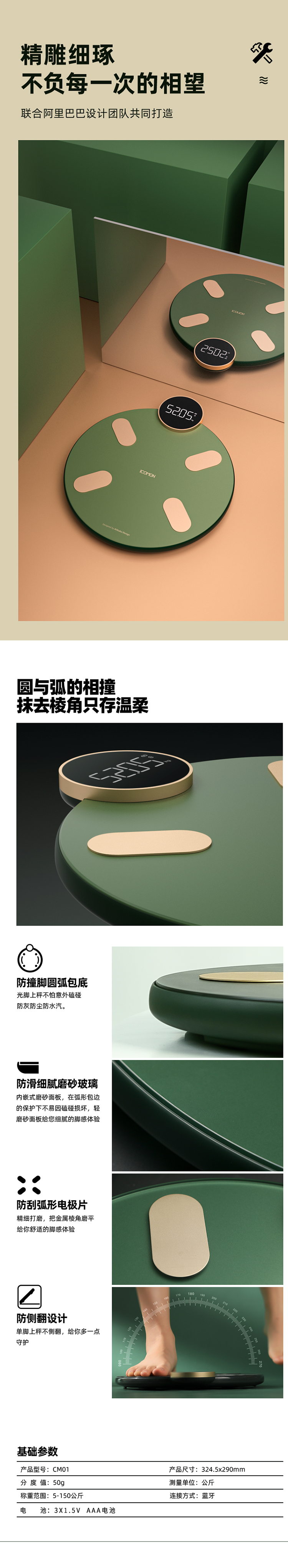 沃莱智能体脂秤小海龟网红系列FG1916B电池款(单位:台) 军绿色