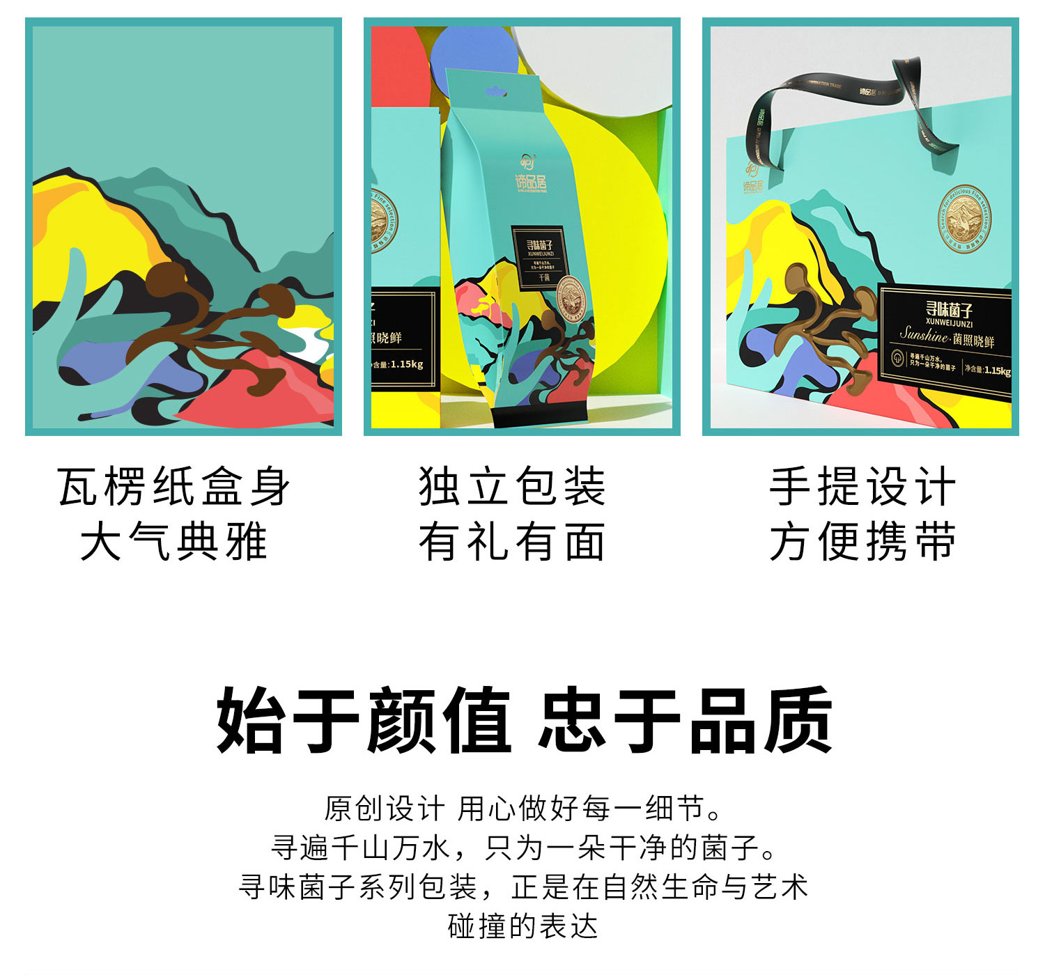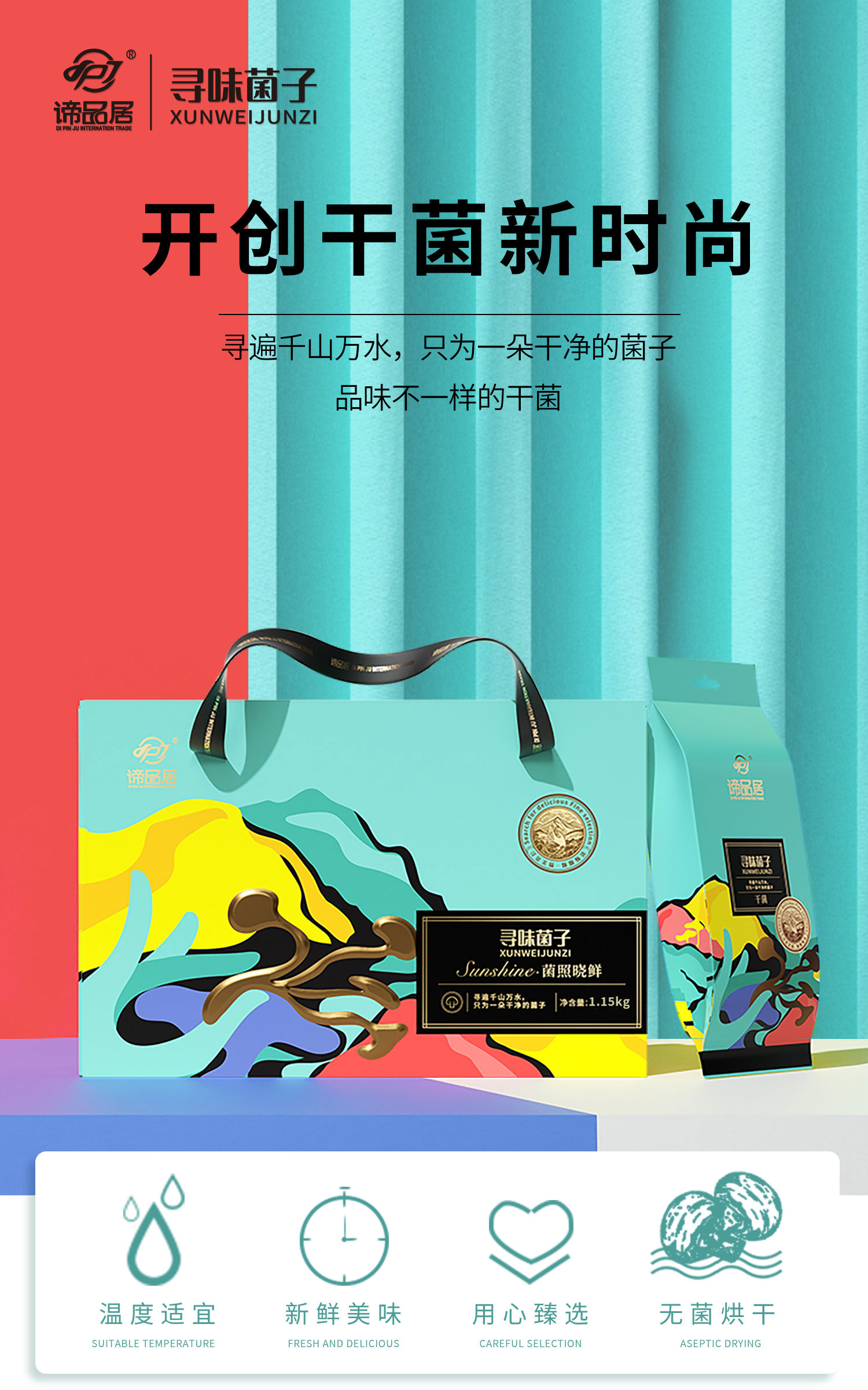 谛品居--菌照晓鲜干菌礼盒1.15kg/盒 松石绿