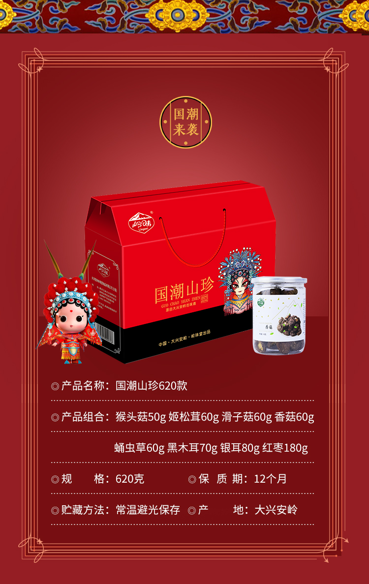 岭味国潮山珍620款干货礼盒620g 红色