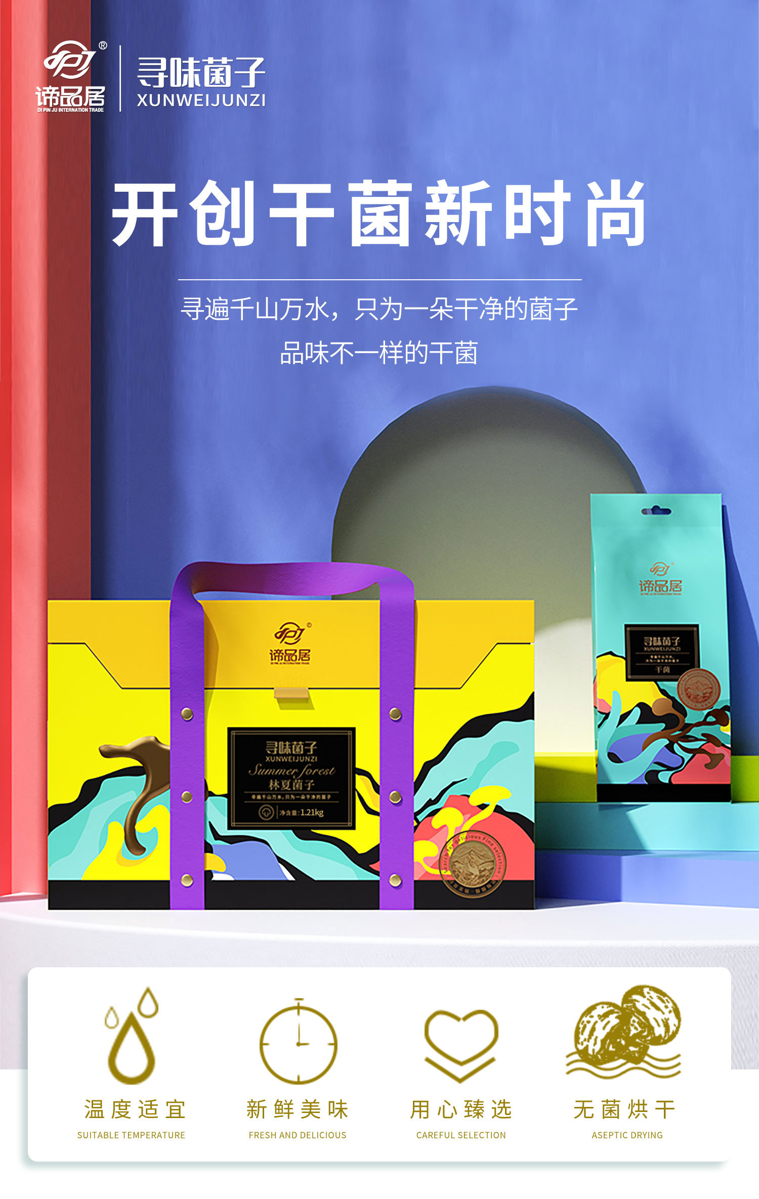 谛品居--林夏菌子干菌礼盒1.21kg/盒 灰绿色