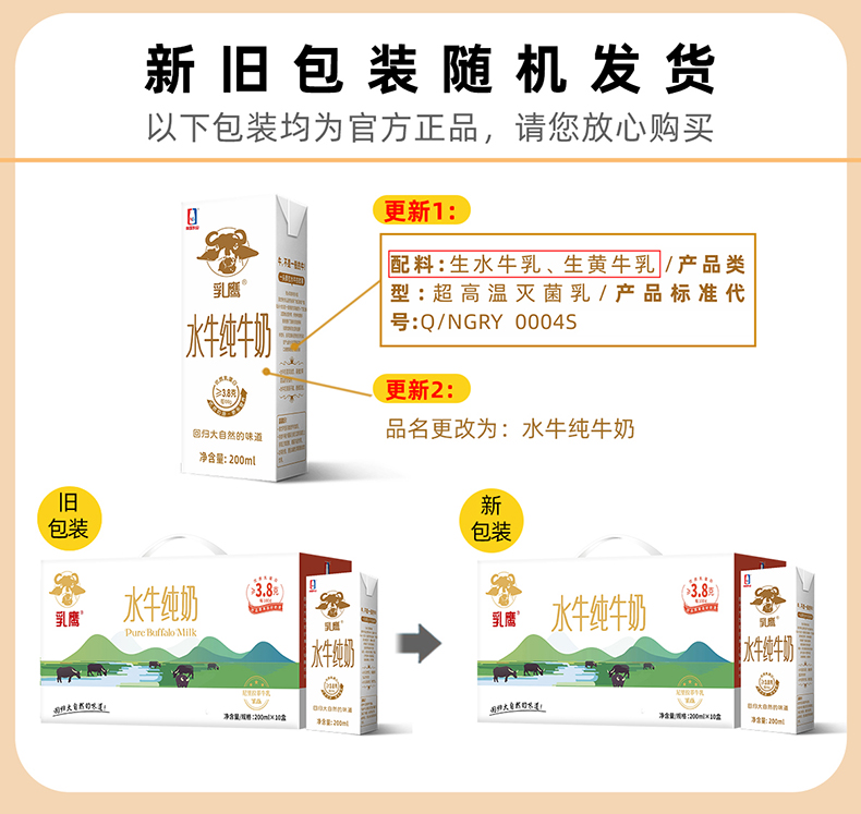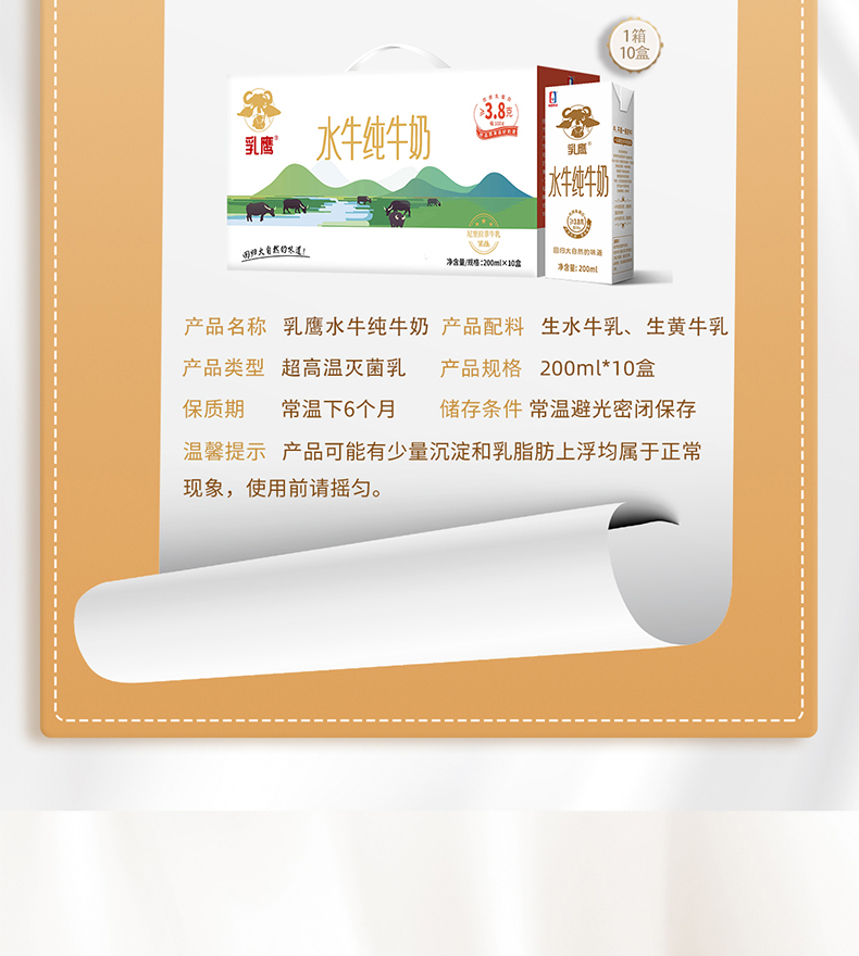 乳鹰水牛纯奶200ml*10盒(单位:提) 白色