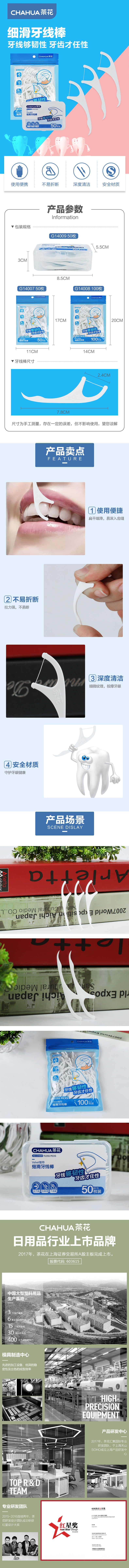 茶花细滑牙线棒100枚 G14008 混色