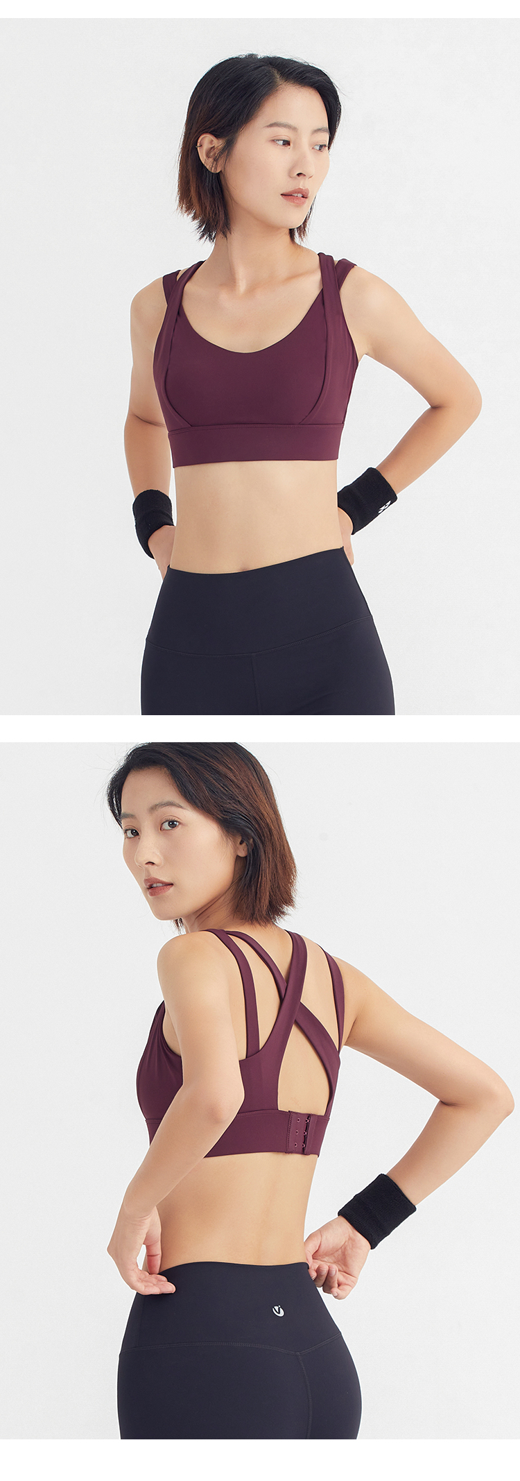 唯卡洛vincrox 运动内衣女高强度防震聚拢透气舒适跑步健身文胸21113 栗红 L
