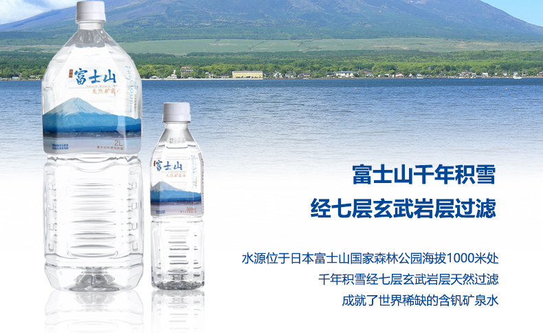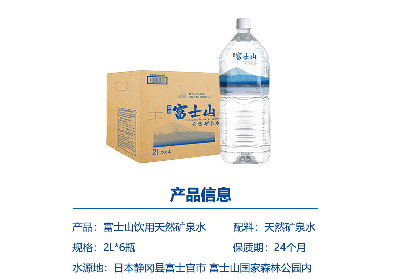富士山天然矿泉水2L*6瓶整箱 日本原装进口 高钒富士山水 家庭弱碱性饮用水 2L*6瓶/箱