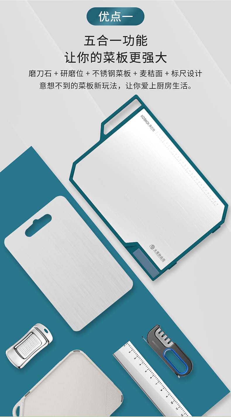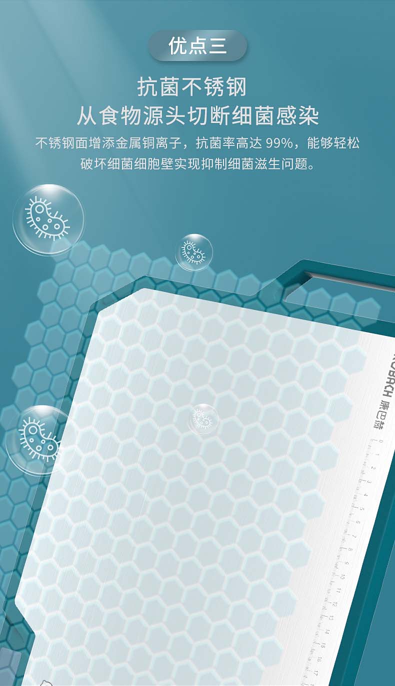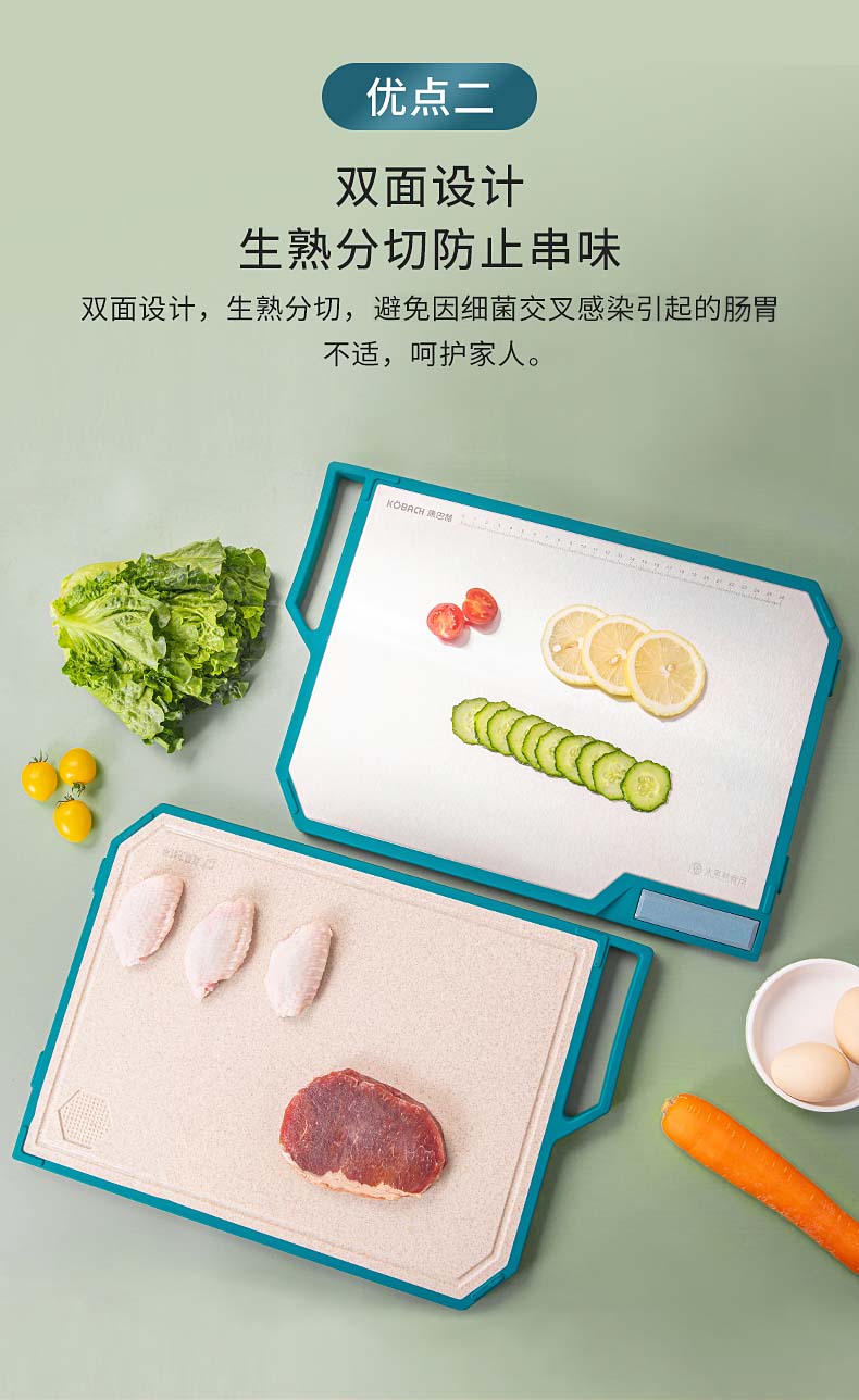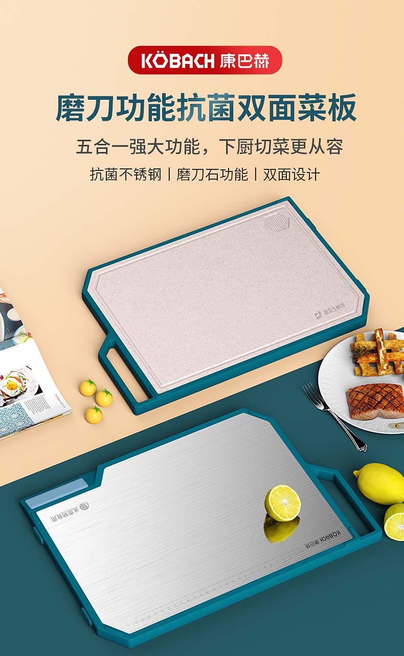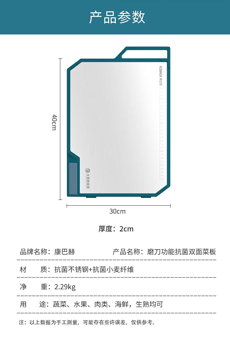 康巴赫(KBH)磨刀功能抗菌不锈钢双面菜板 含磨刀研磨功能 KQM-4030M1D(单位:个) 不锈钢色