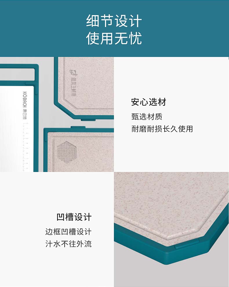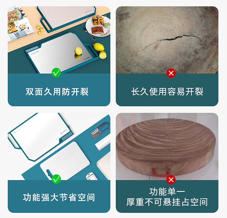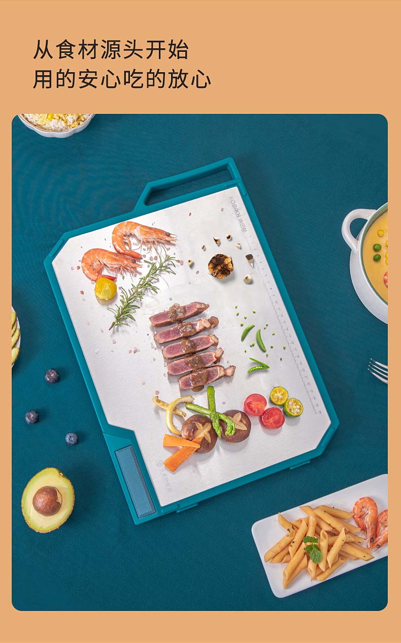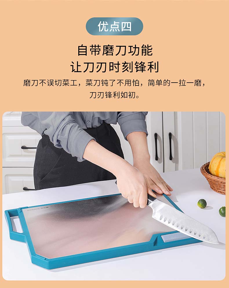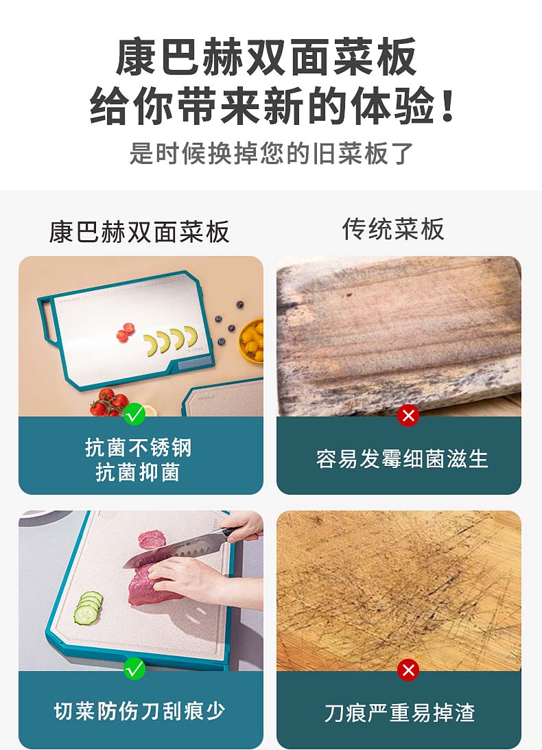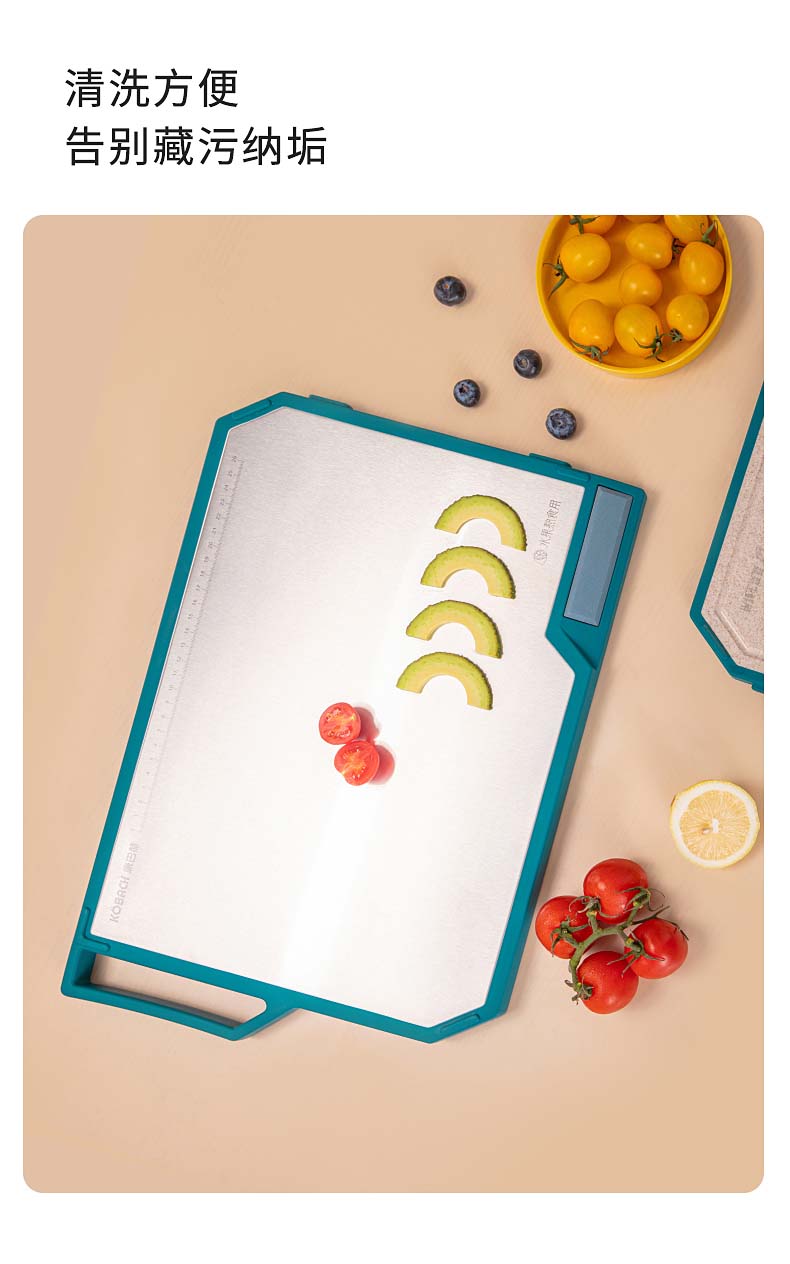 康巴赫(KBH)磨刀功能抗菌不锈钢双面菜板 含磨刀研磨功能 KQM-4030M1D(单位:个) 不锈钢色