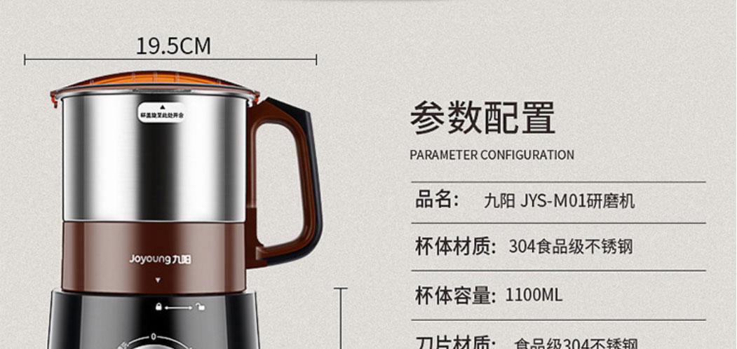 九阳(Joyoung)料理机研磨机牛磨王系列磨粉机研磨杯 JYS-M01咖色 褐色