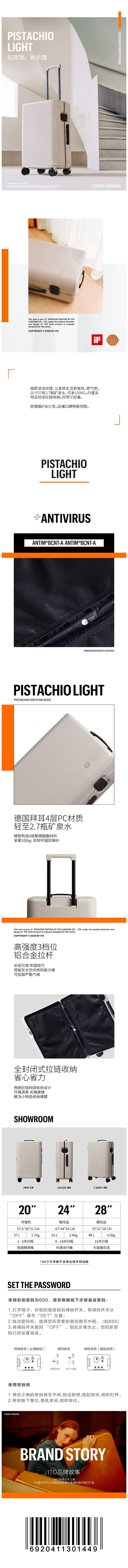 ITO开心果系列网红拉杆箱LIGHT条纹(单位:个) 白色 20寸