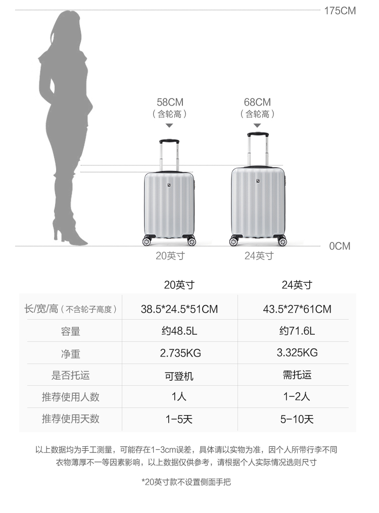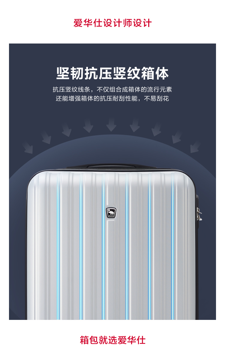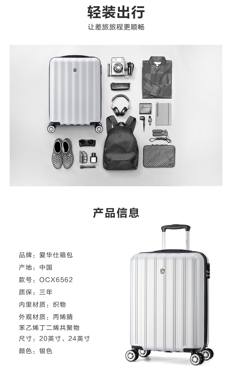 爱华仕(OIWAS)时尚商务伴侣万向轮拉杆箱 6562(单位:个) 银色 20寸