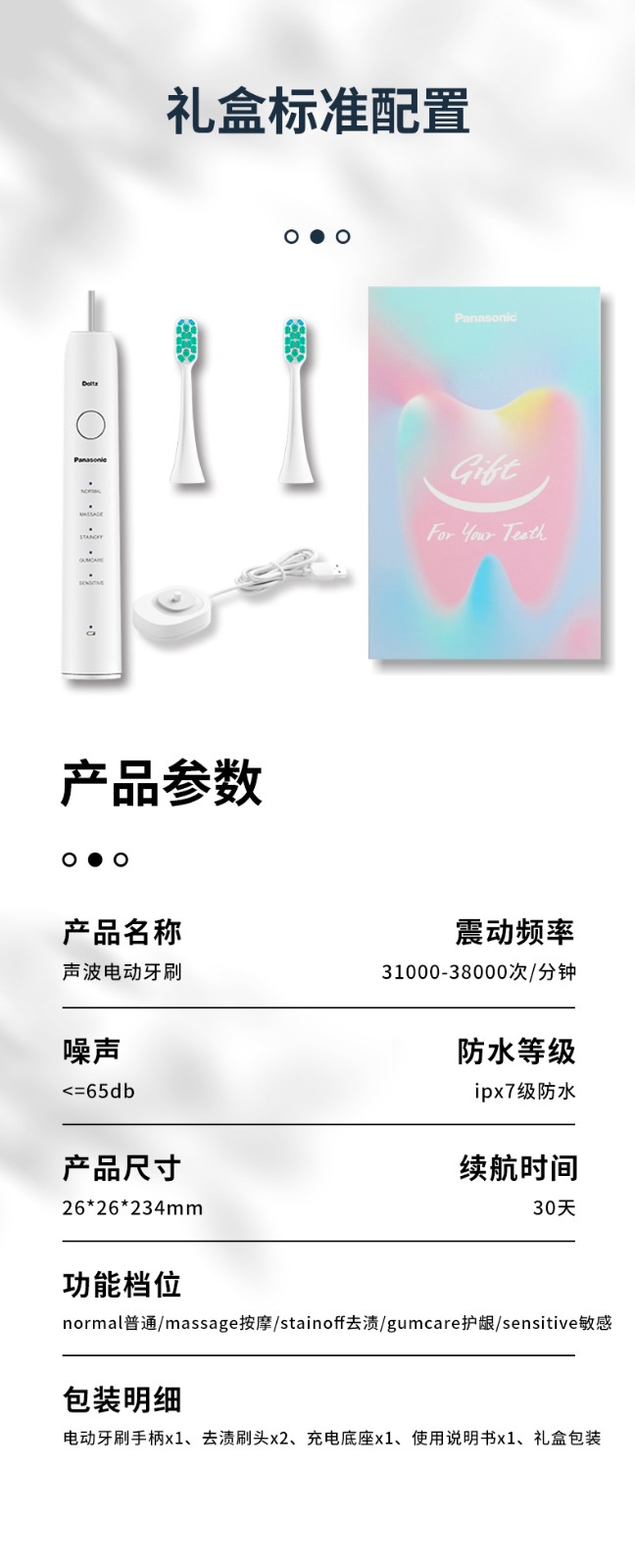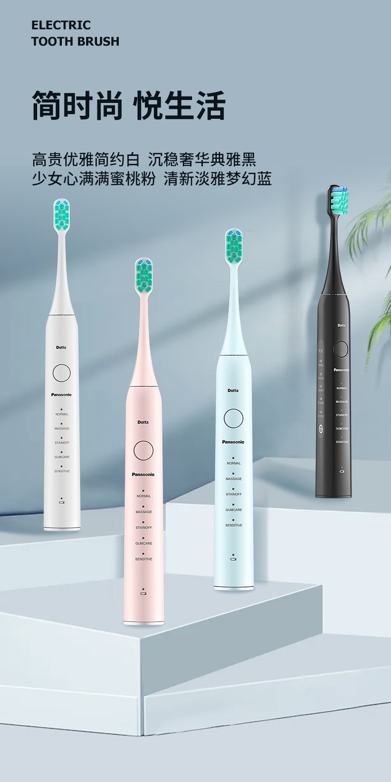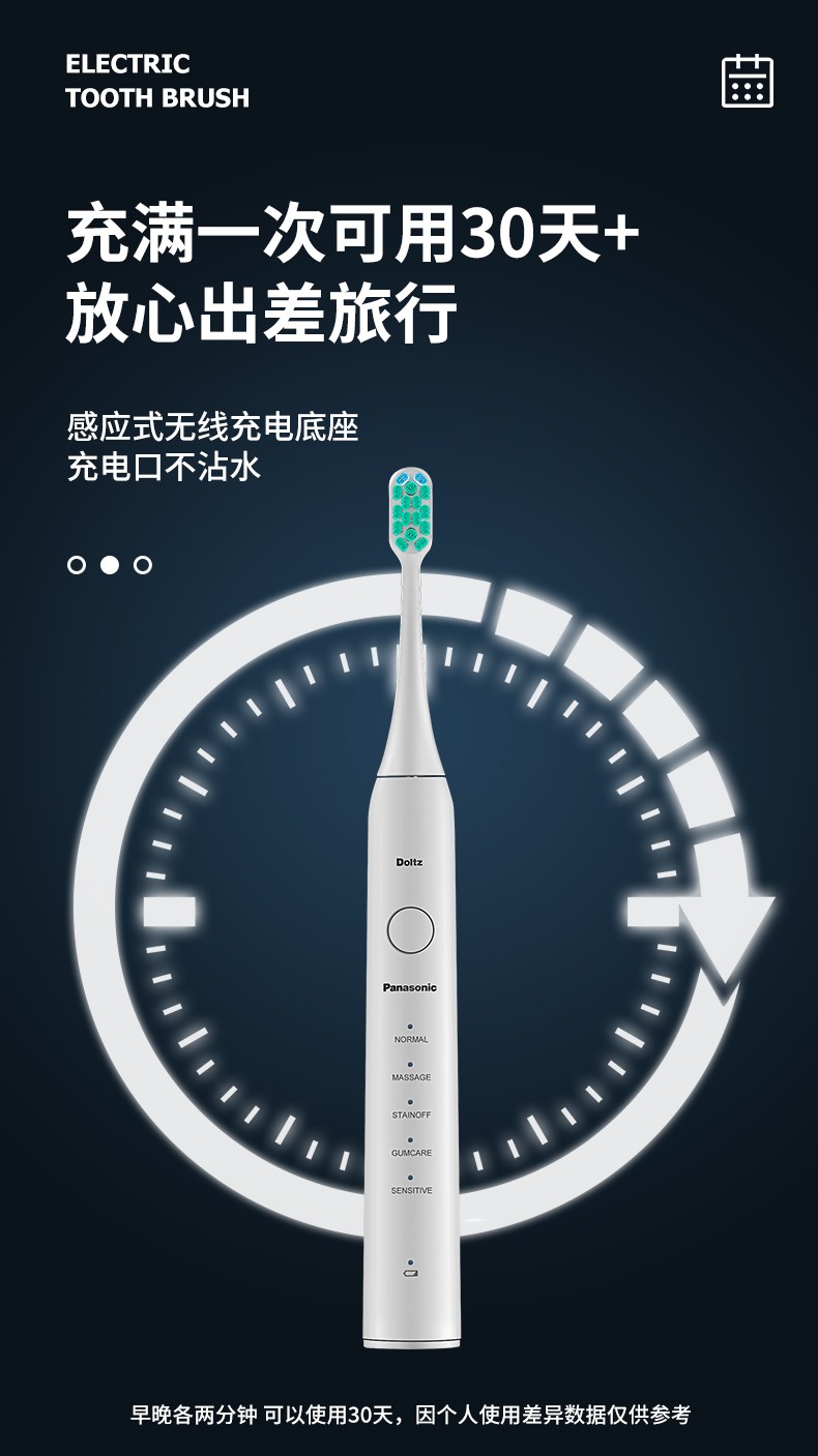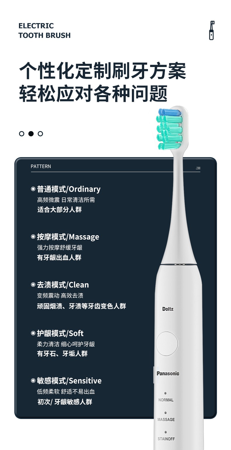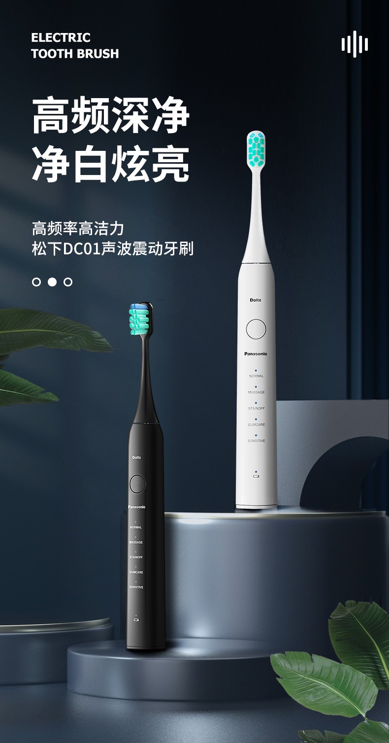 松下(Panasonic)电动牙刷成人 EW-DC01【黑色标准款】手柄*1+刷头*2 黑色