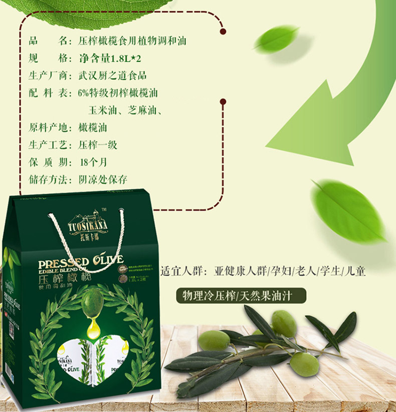 厨道托斯卡娜压榨橄榄1.8L*2/提 军绿色