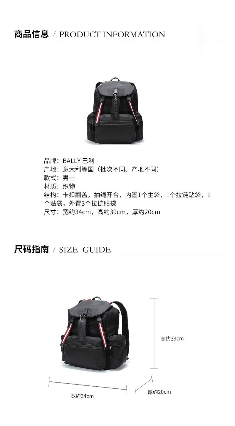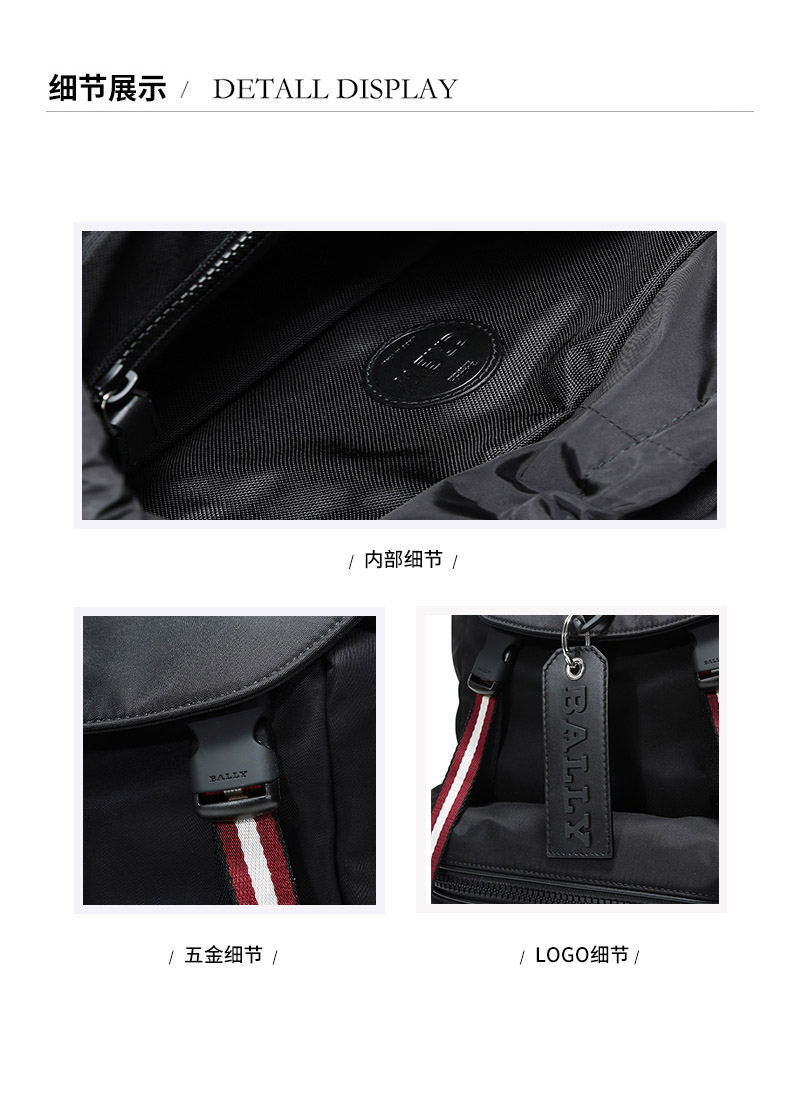 Bally 巴利男士纹织物双肩包电脑包 Z11100325217 黑色