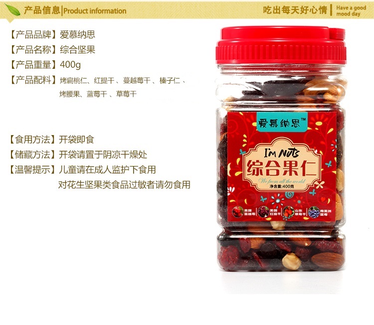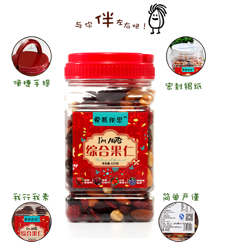 爱慕纳思I`mnuts网红零食每日坚果罐装综合果仁400克 红色