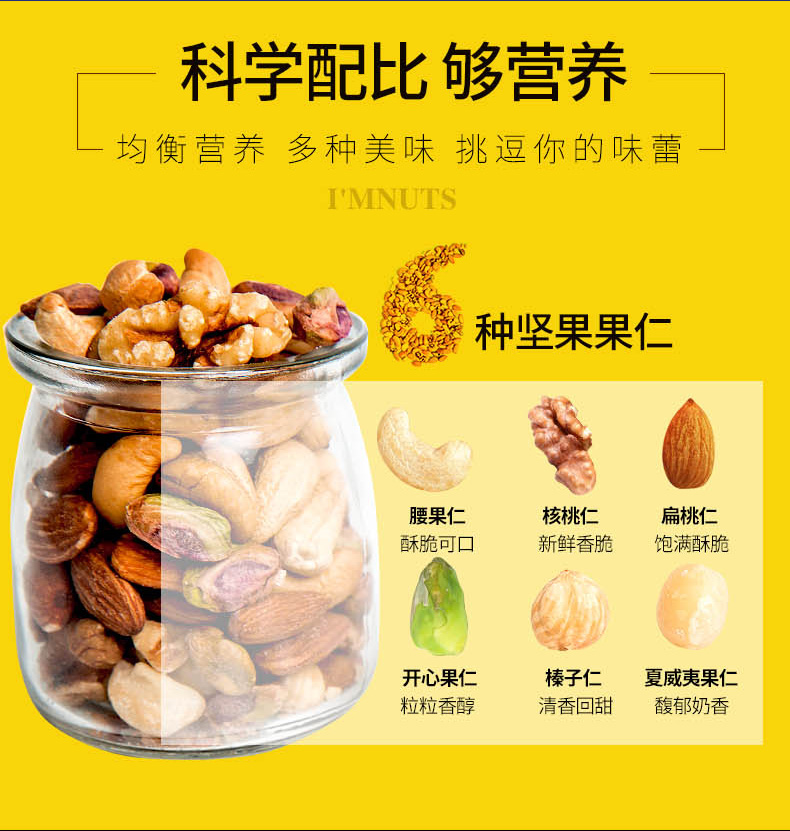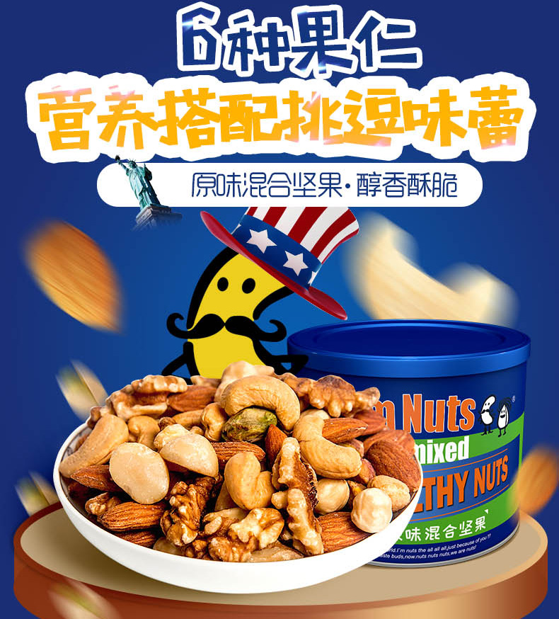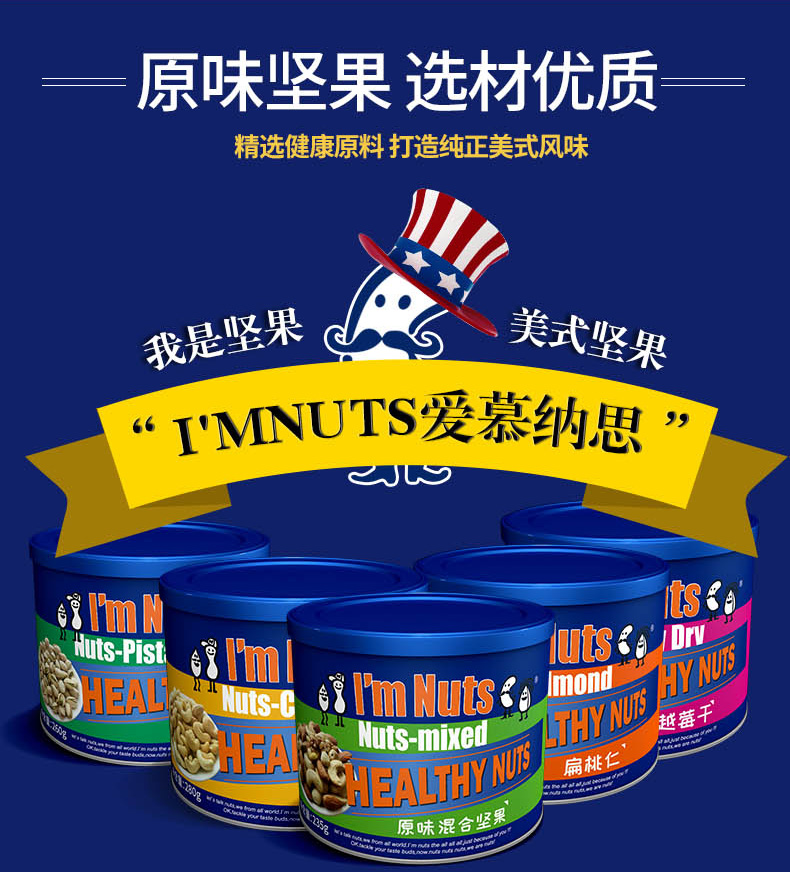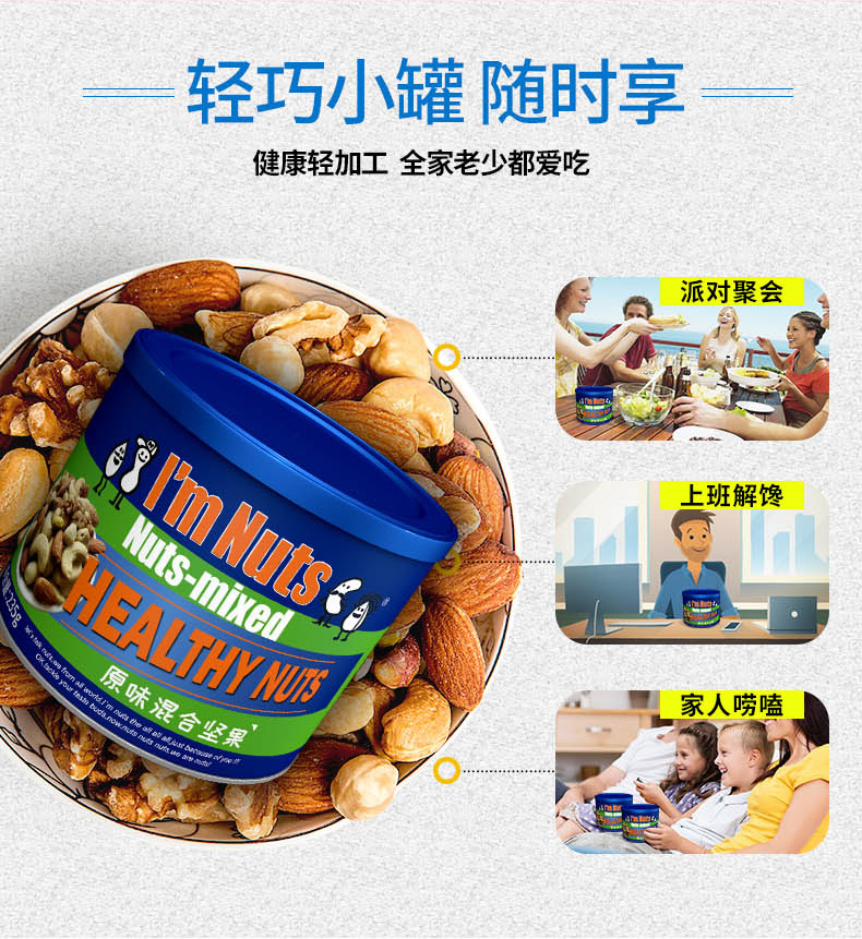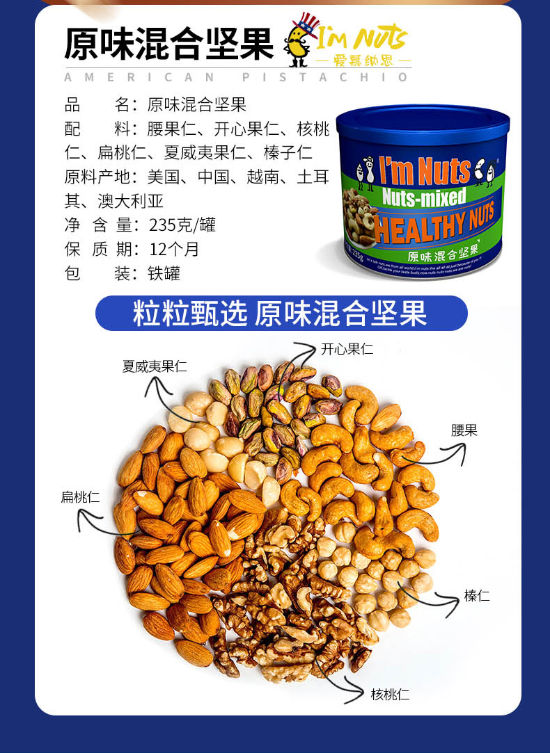 爱慕纳思I`mnuts网红零食铁罐装原味混合坚果235克 红色