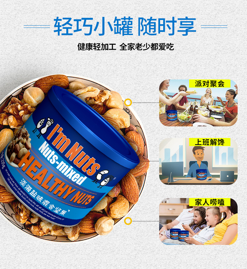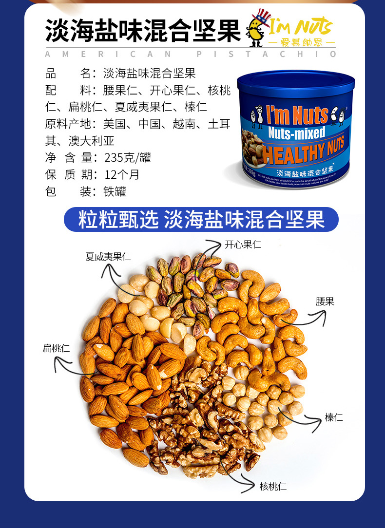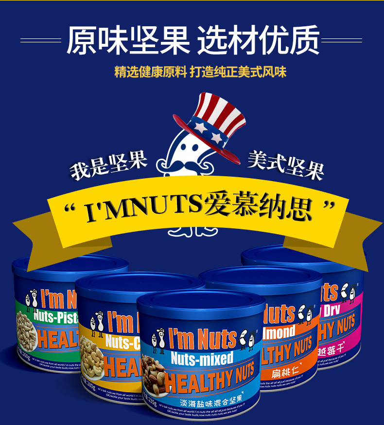 爱慕纳思i`mnuts铁罐淡海盐味混合坚果235克 红色