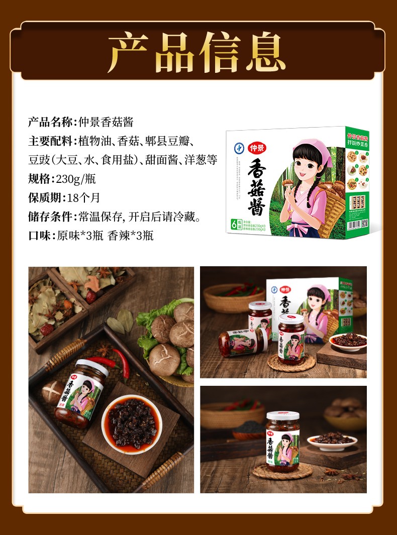 仲景香菇酱礼盒230克*6瓶礼盒 松石绿