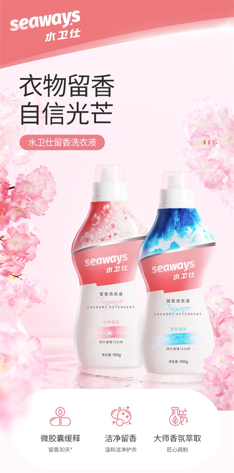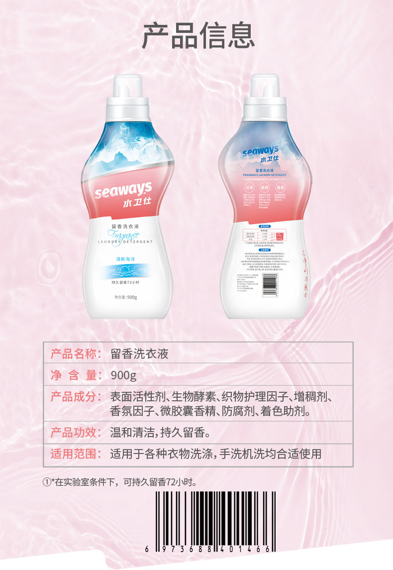 水卫仕(seaways)留香洗衣液(清新海洋)900g×1瓶 (单位:瓶)海蓝色