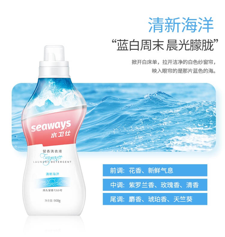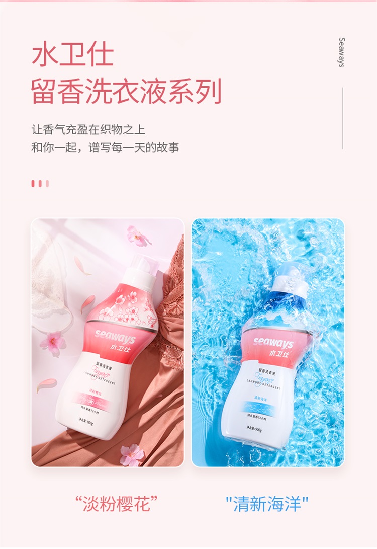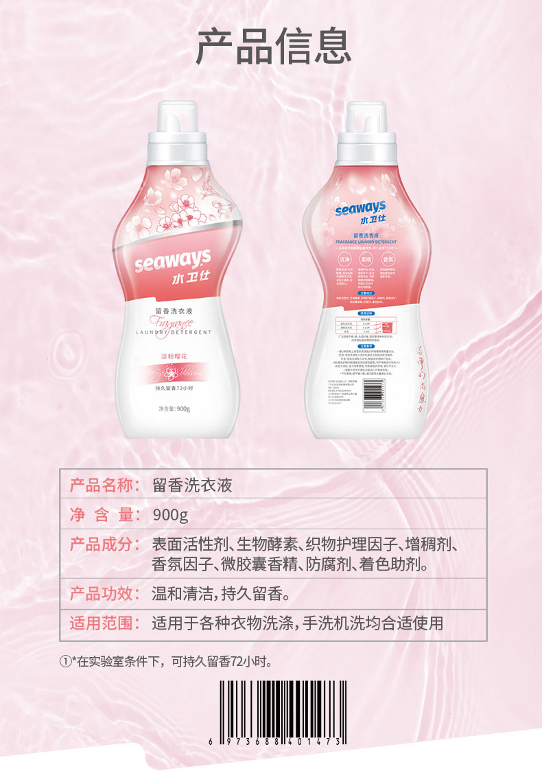 水卫仕(seaways)香氛洗衣液(淡粉樱花)900g×1瓶 (单位:瓶)粉色