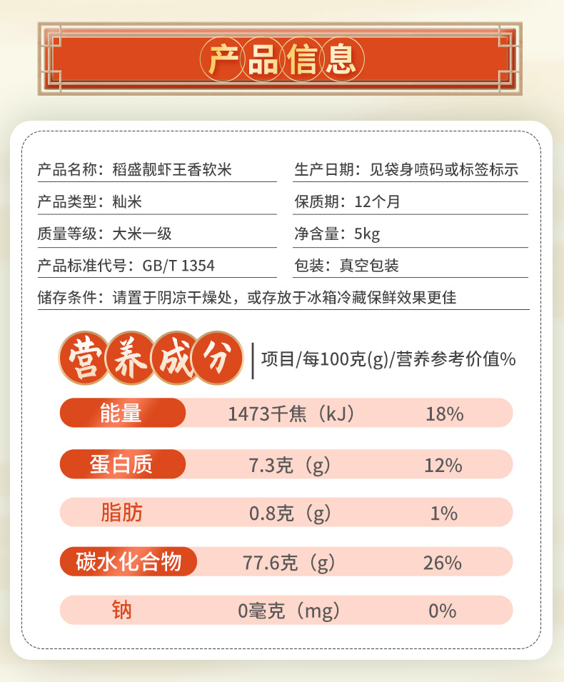 太粮(FERTILE LAND)(稻盛)靓虾王香软米5kg 单位:包 红色