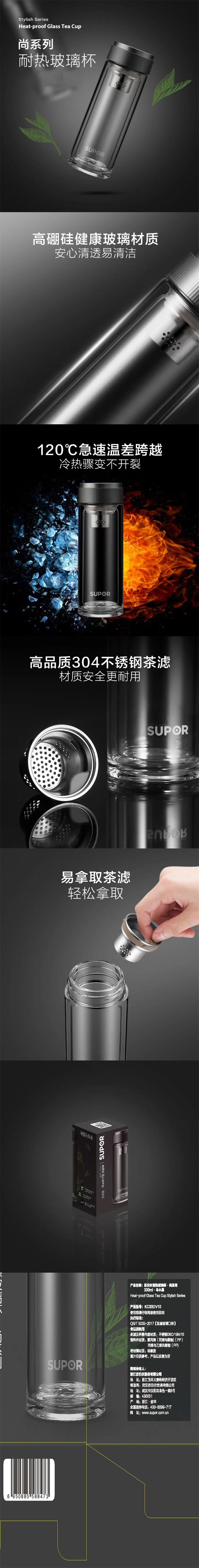 苏泊尔(SUPOR)耐热玻璃杯·尚系列330ML KC33DV10 (单位:个)乌木黑 黑色