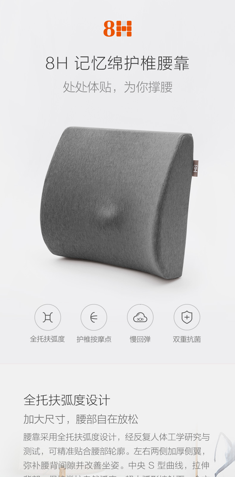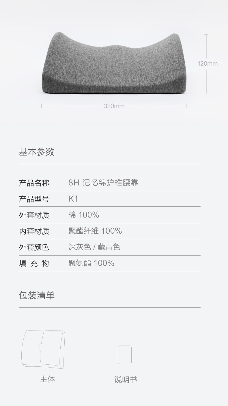 8H记忆棉护颈腰靠 K1(有品) 混灰色