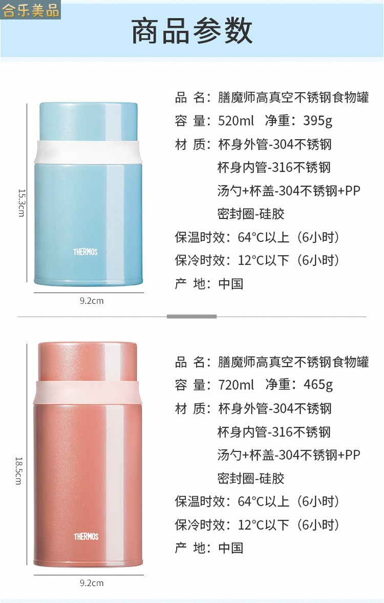 THERMOS(膳魔师)焖烧杯316高真空不锈钢520mlTCLD-520(单位:个) 宝石蓝