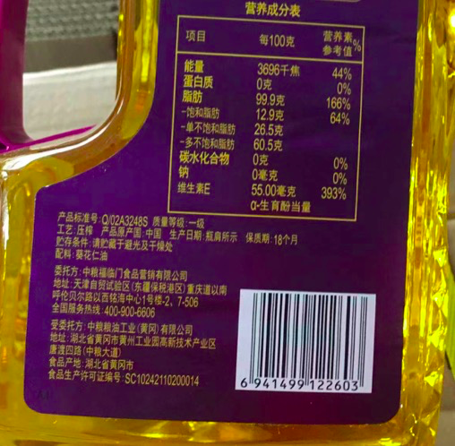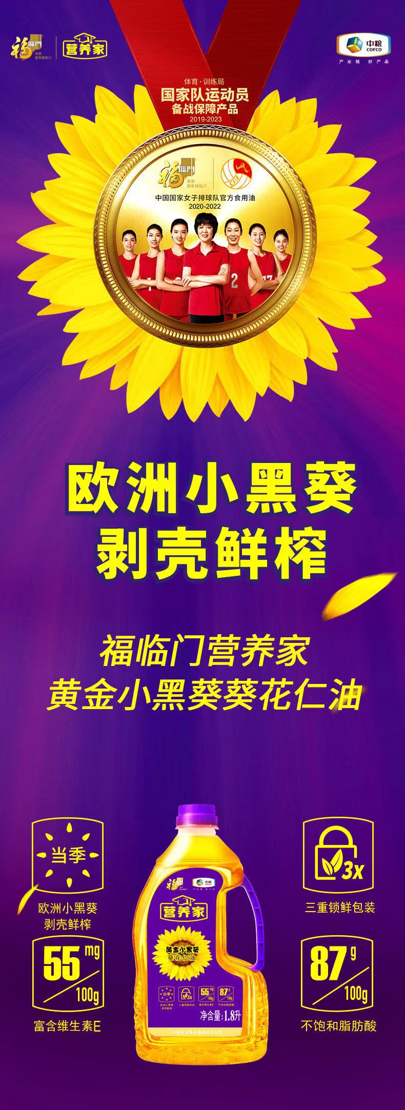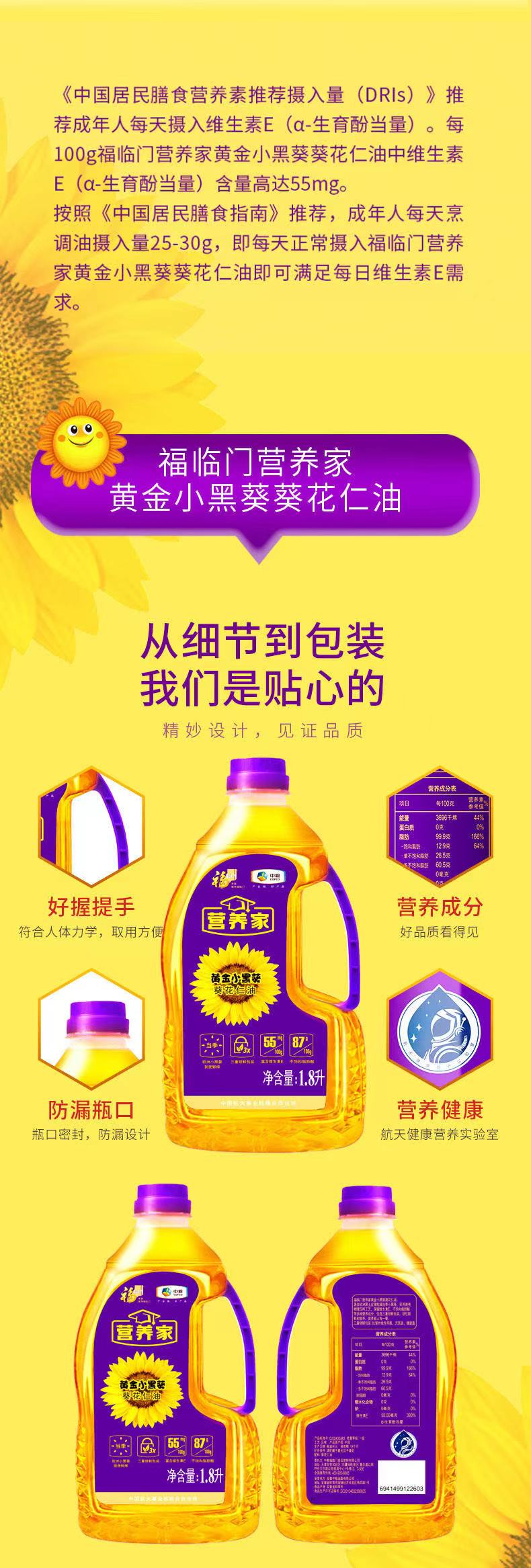 福临门营养家黄金小黑葵花仁油1.8L .