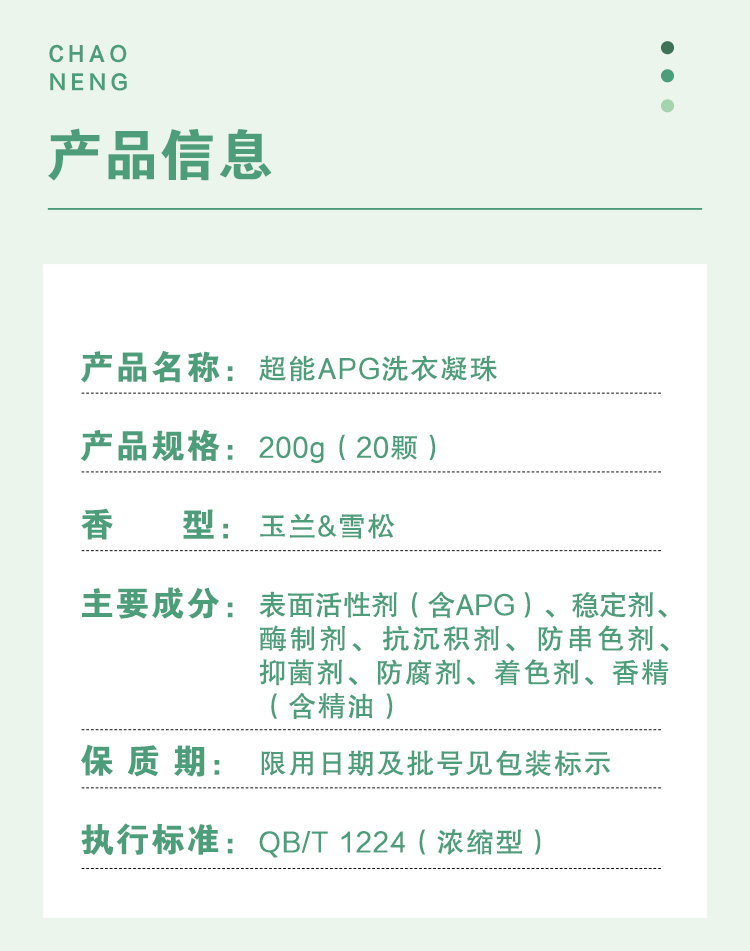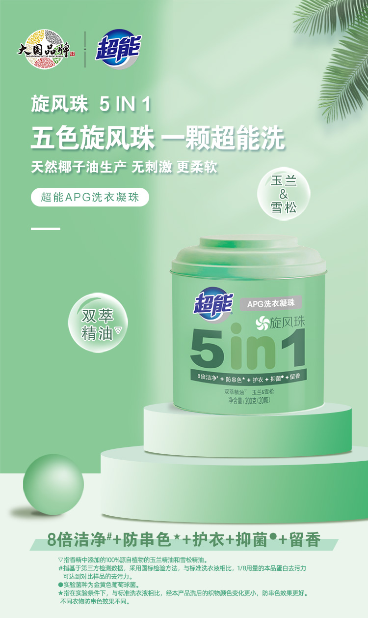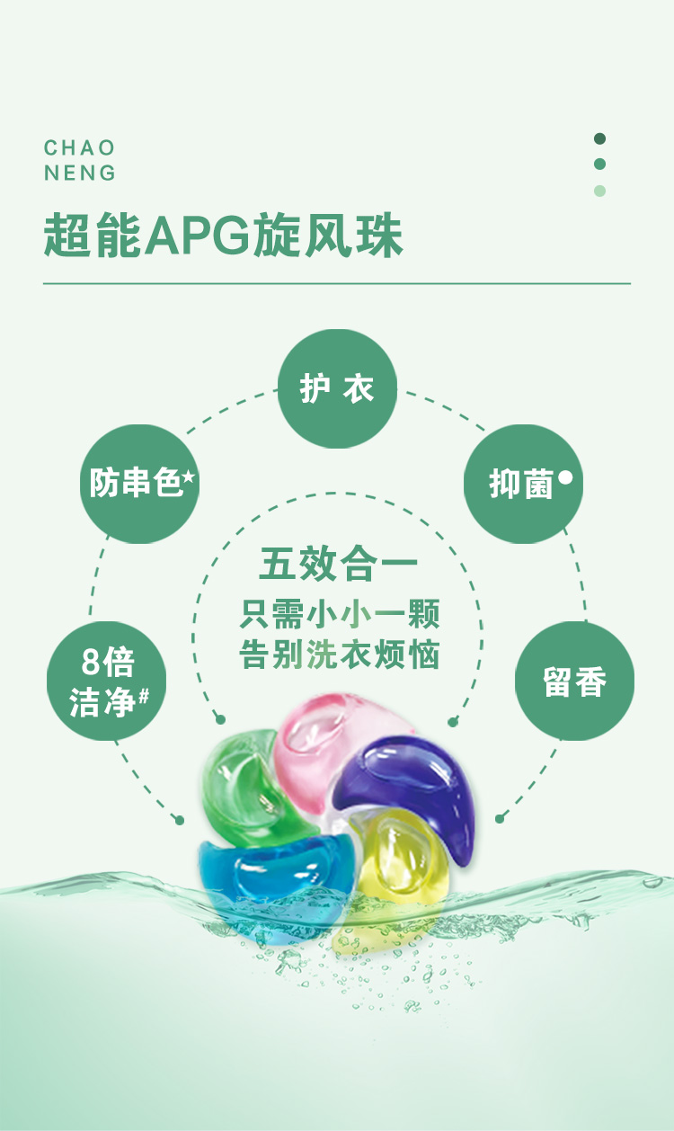 超能APG洗衣凝珠(5腔)200g(20颗)/瓶 图片色