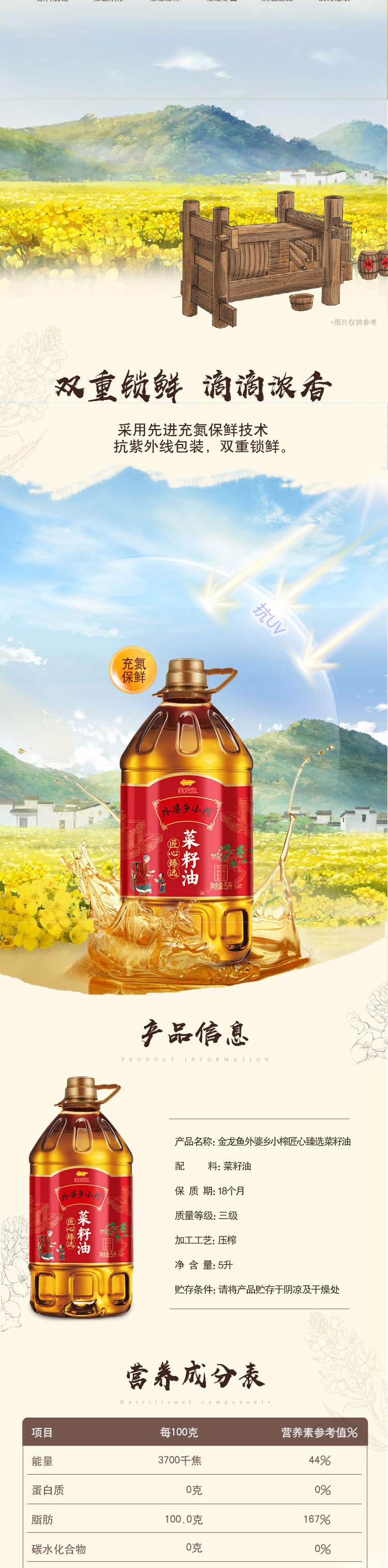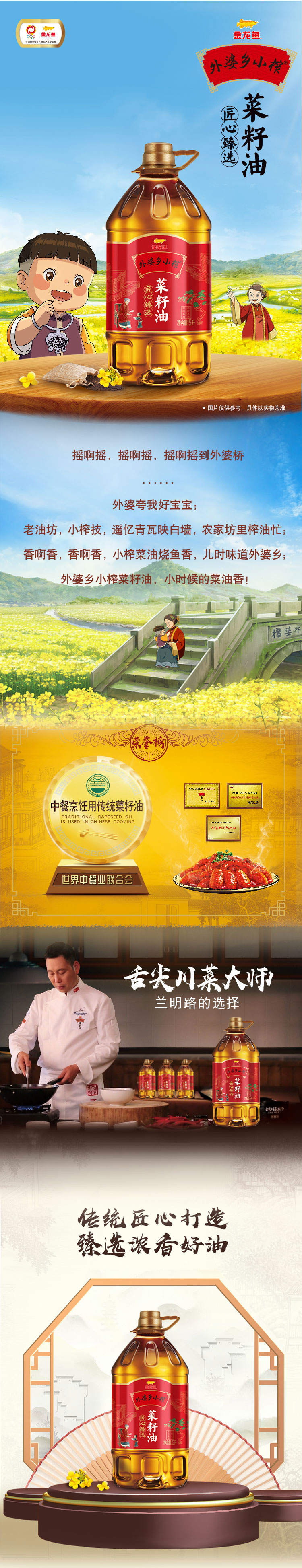 金龙鱼 外婆乡小榨匠心臻选菜籽油5L(单位:桶) 红色