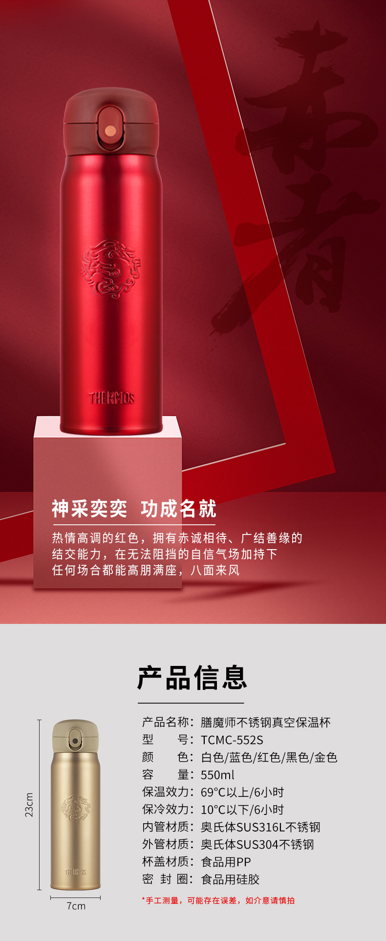 THERMOS(膳魔师)高真空保温杯TCMC-552S五行龙运杯550ml 金色