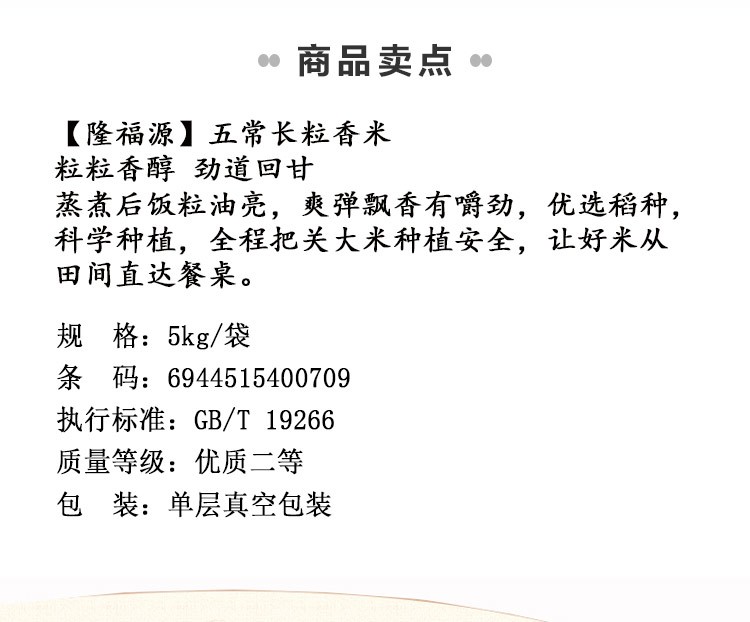 隆福源五常长粒香米 5kg/袋