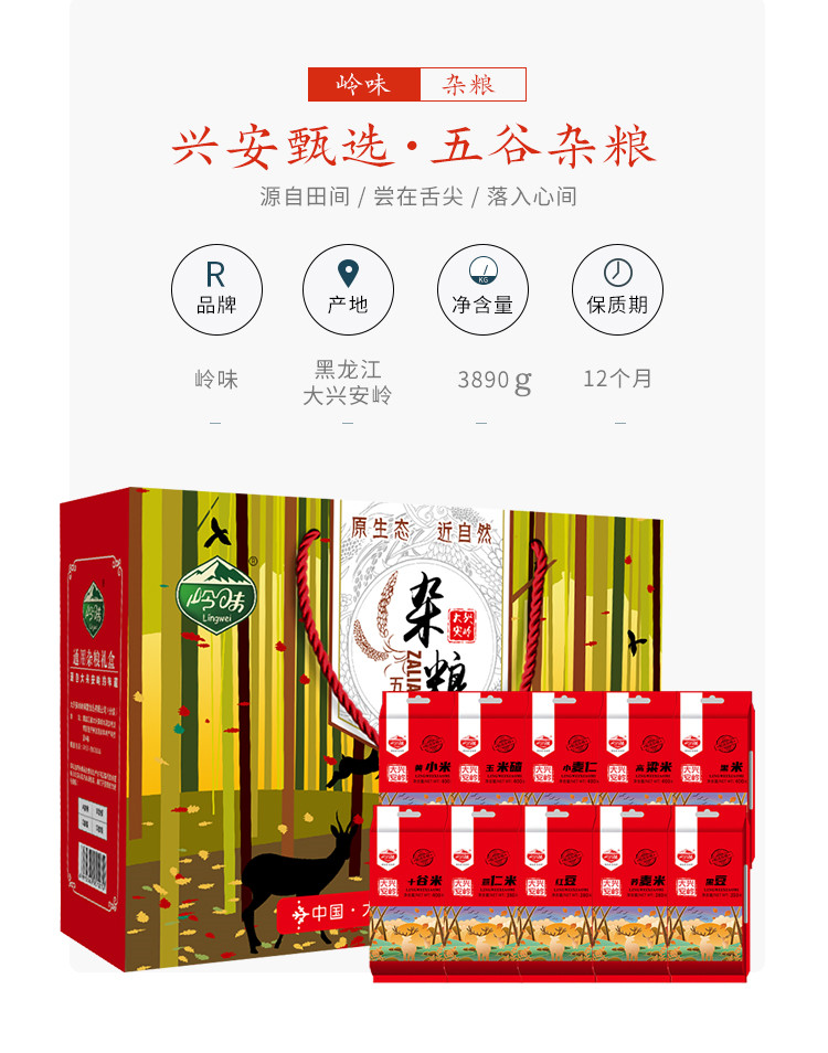 岭味堂 五谷杂粮礼盒B 3890款 自然色 3.89kg/盒