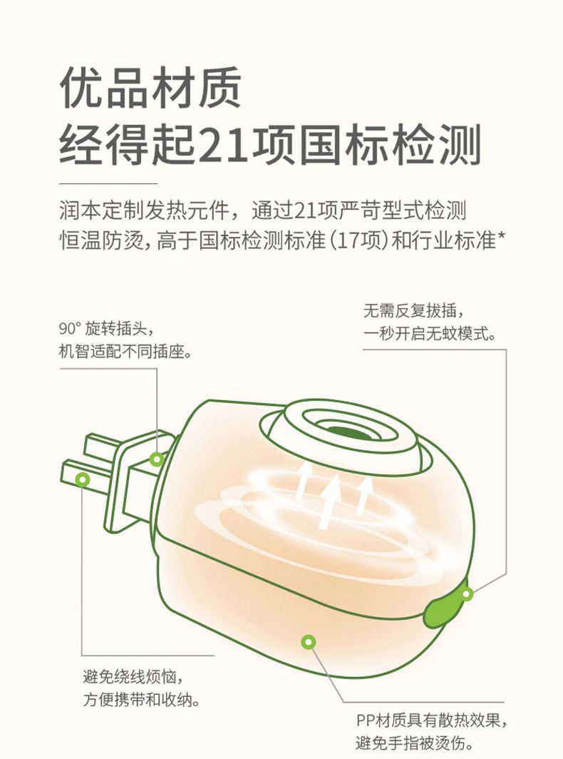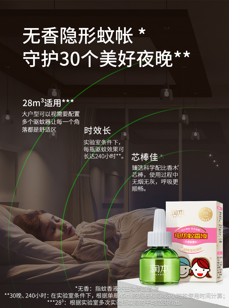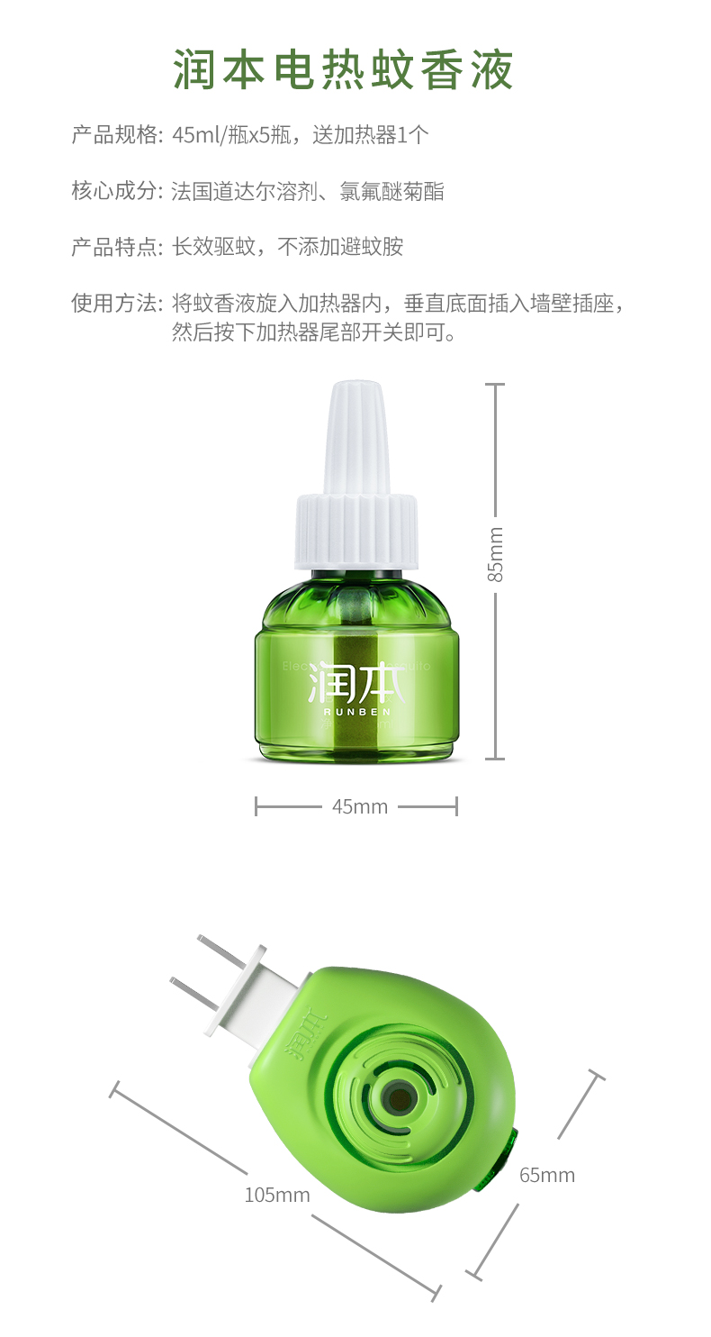 润本电热蚊香液(无香型)驱蚊液45ml*5+加热器*1 绿色