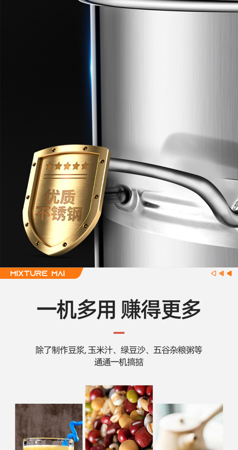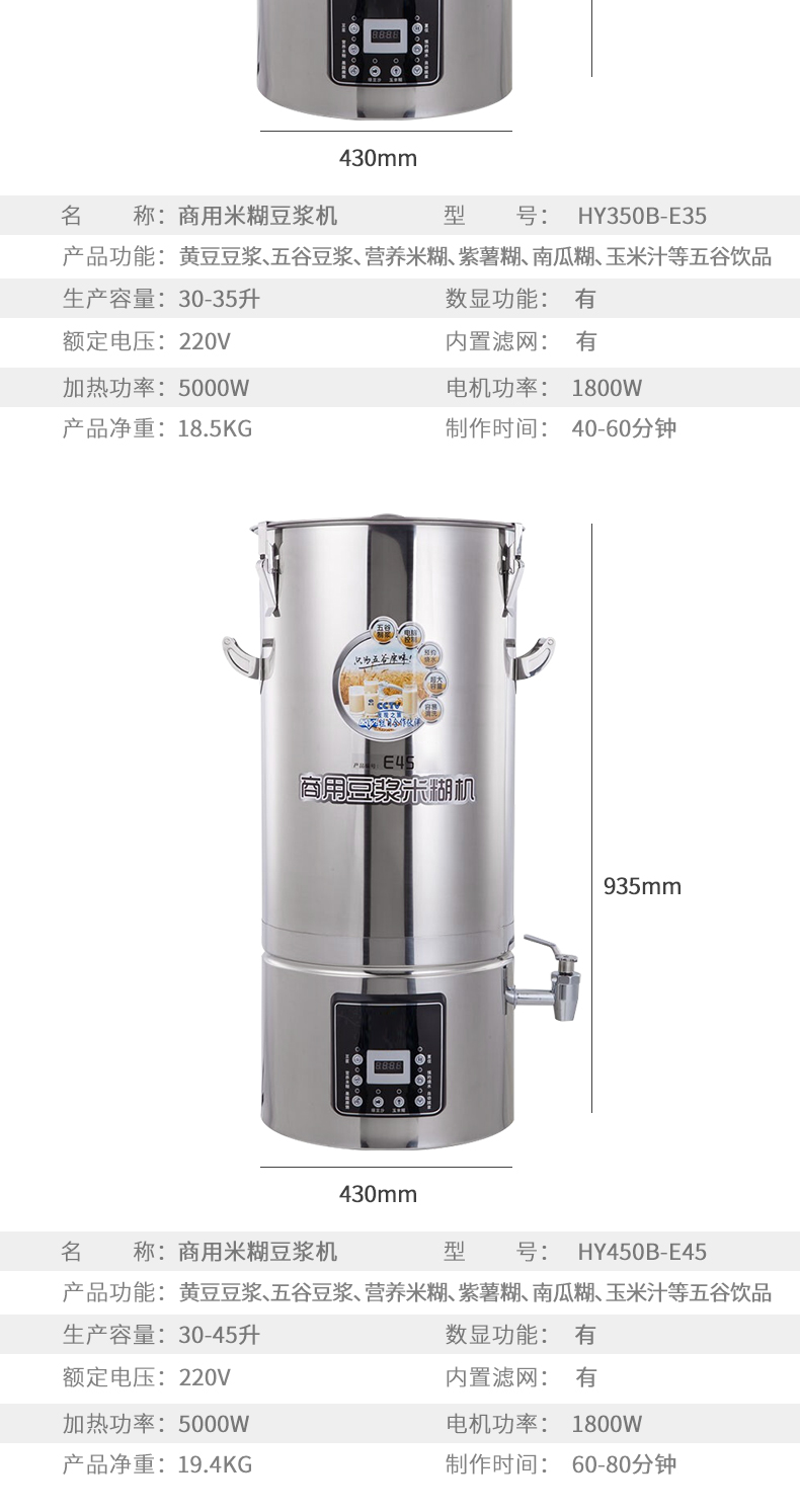 脉巴赫豆浆机商用 现磨大容量无渣不锈钢米浆机 商用豆浆机早餐店全自动免滤磨浆机 35升 HY350B-E35 白色