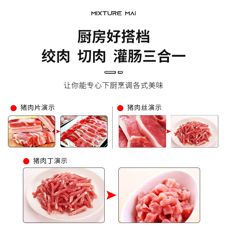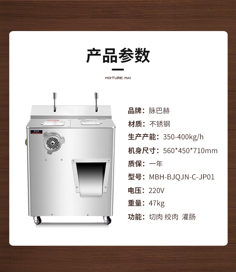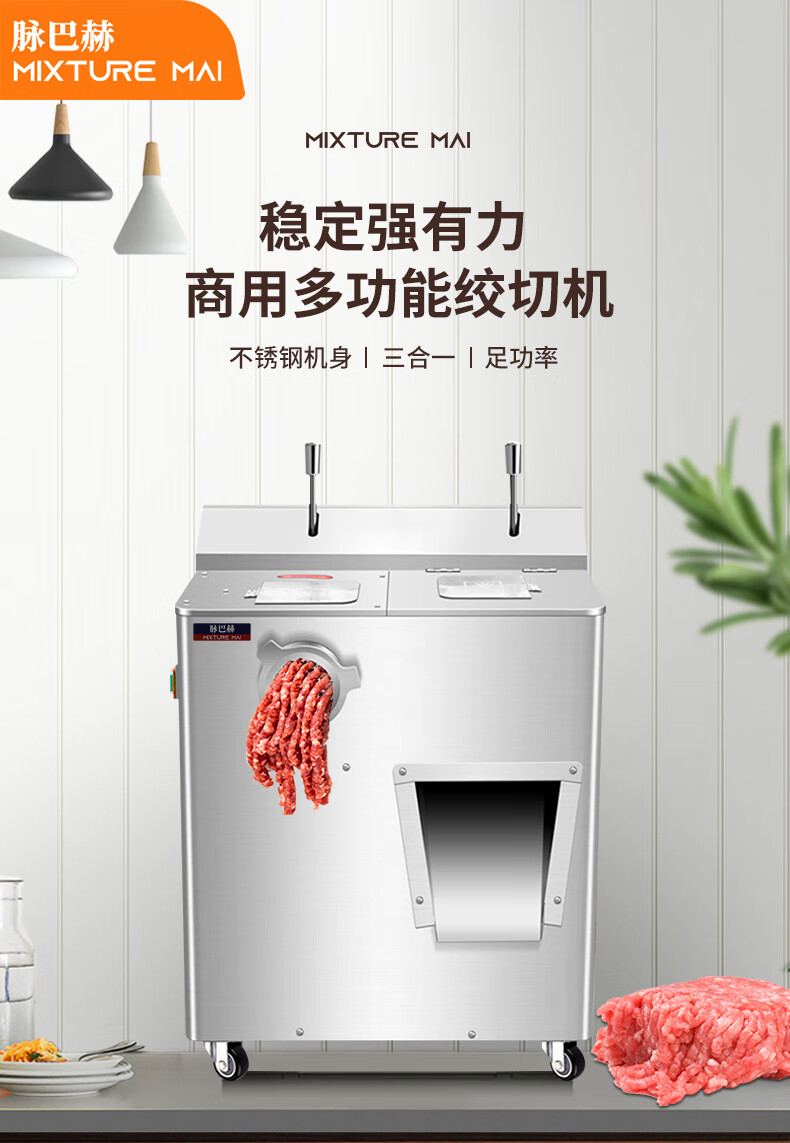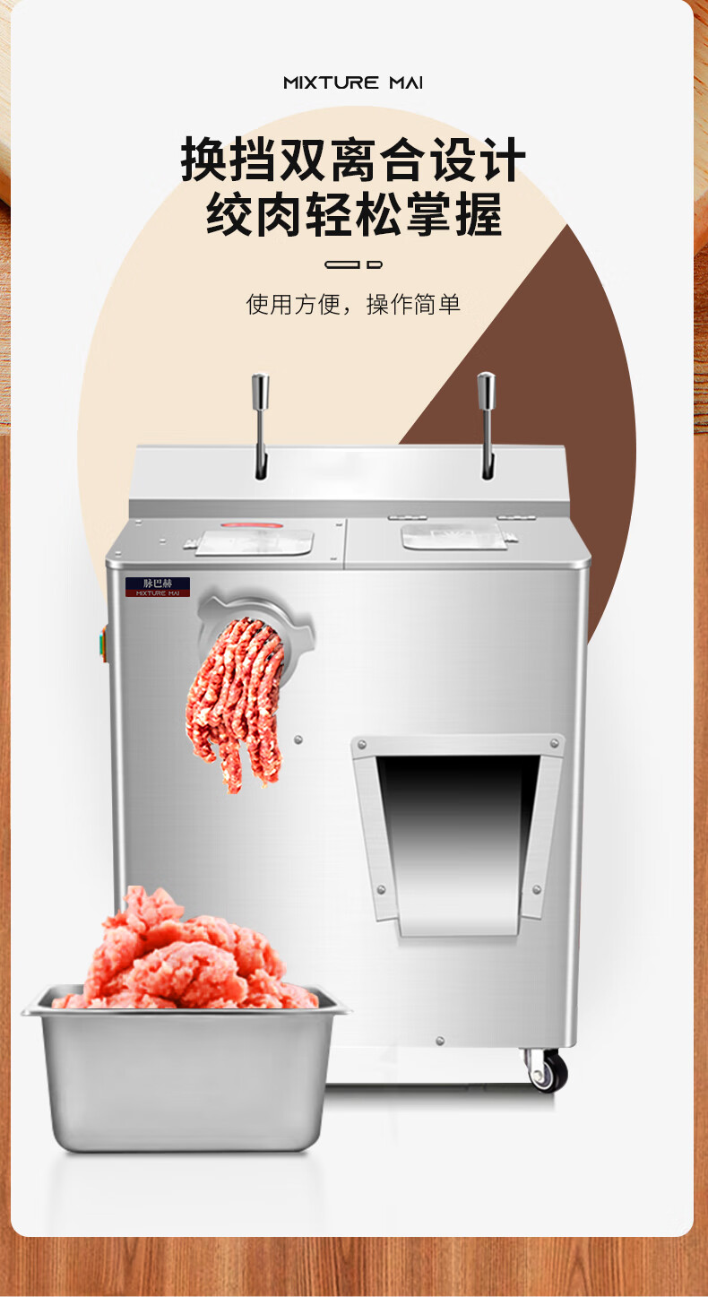 脉巴赫绞切机 商用切肉机大功率全自动电动绞肉切肉灌肠一体机 不锈钢机身 MBH-BJQJN-C-JP01 白色