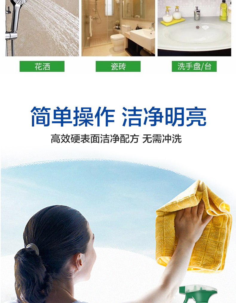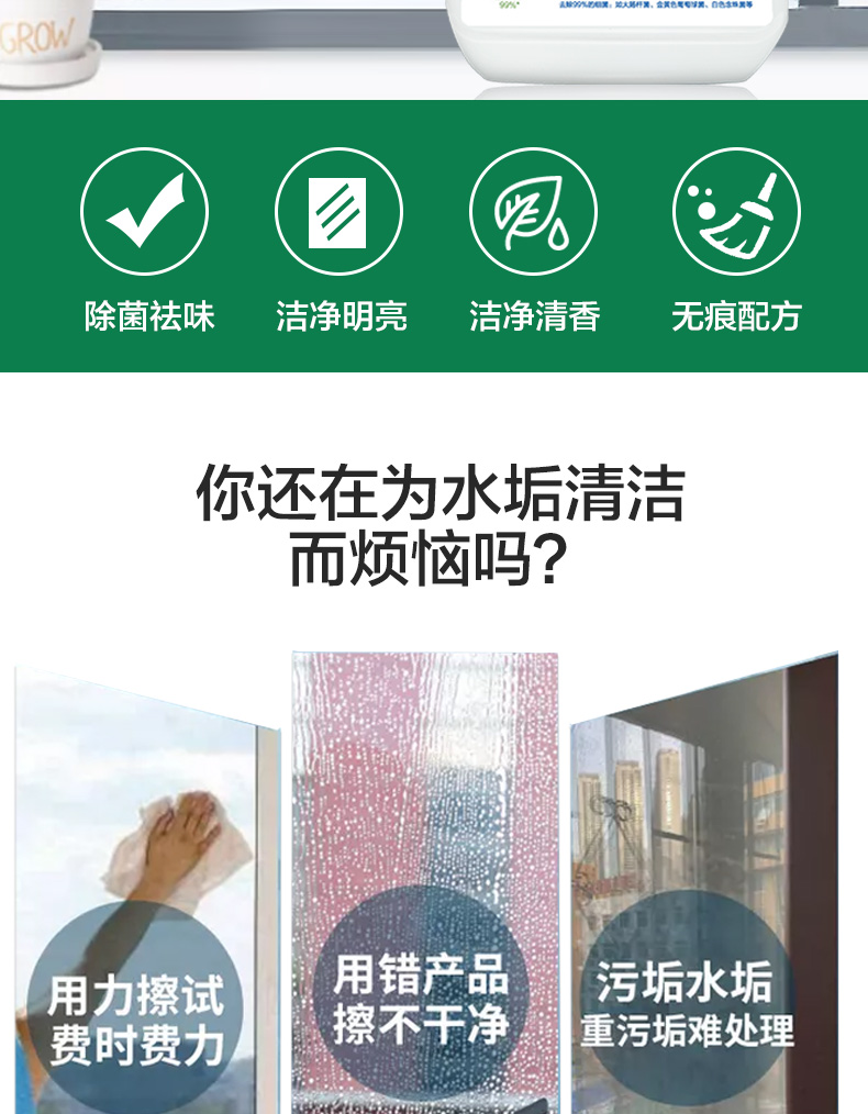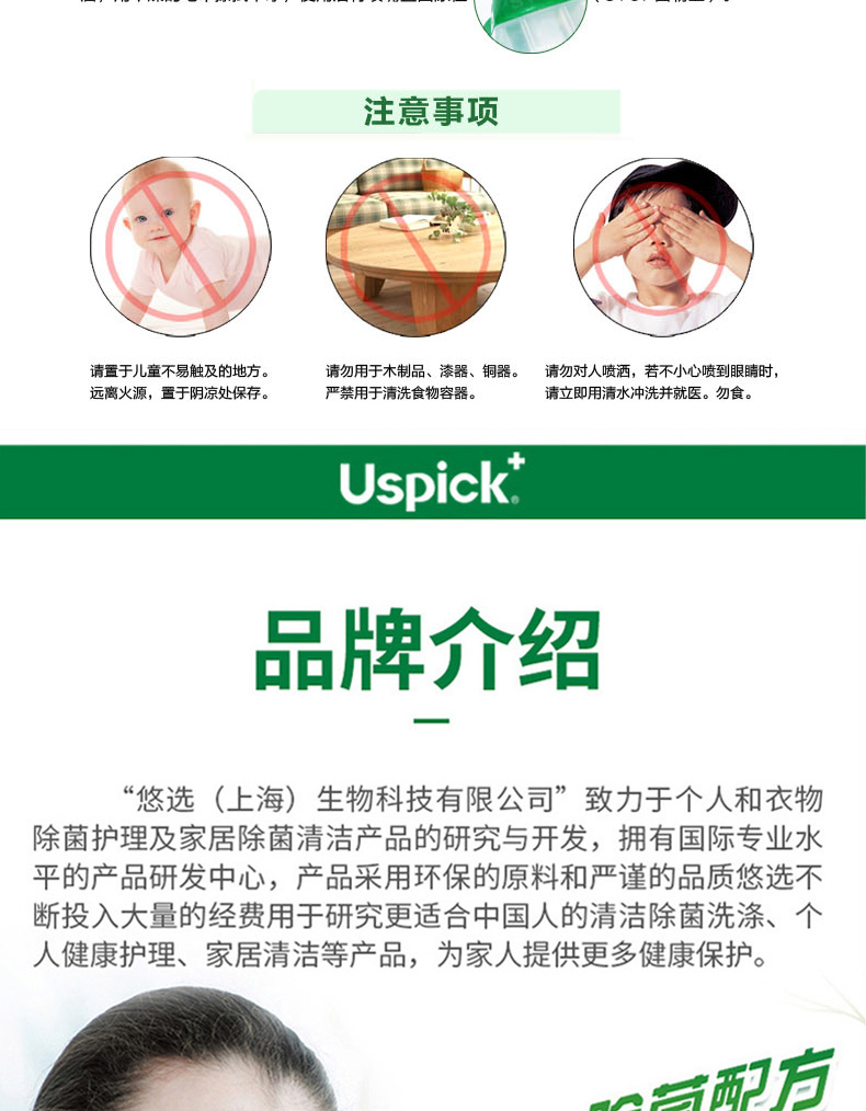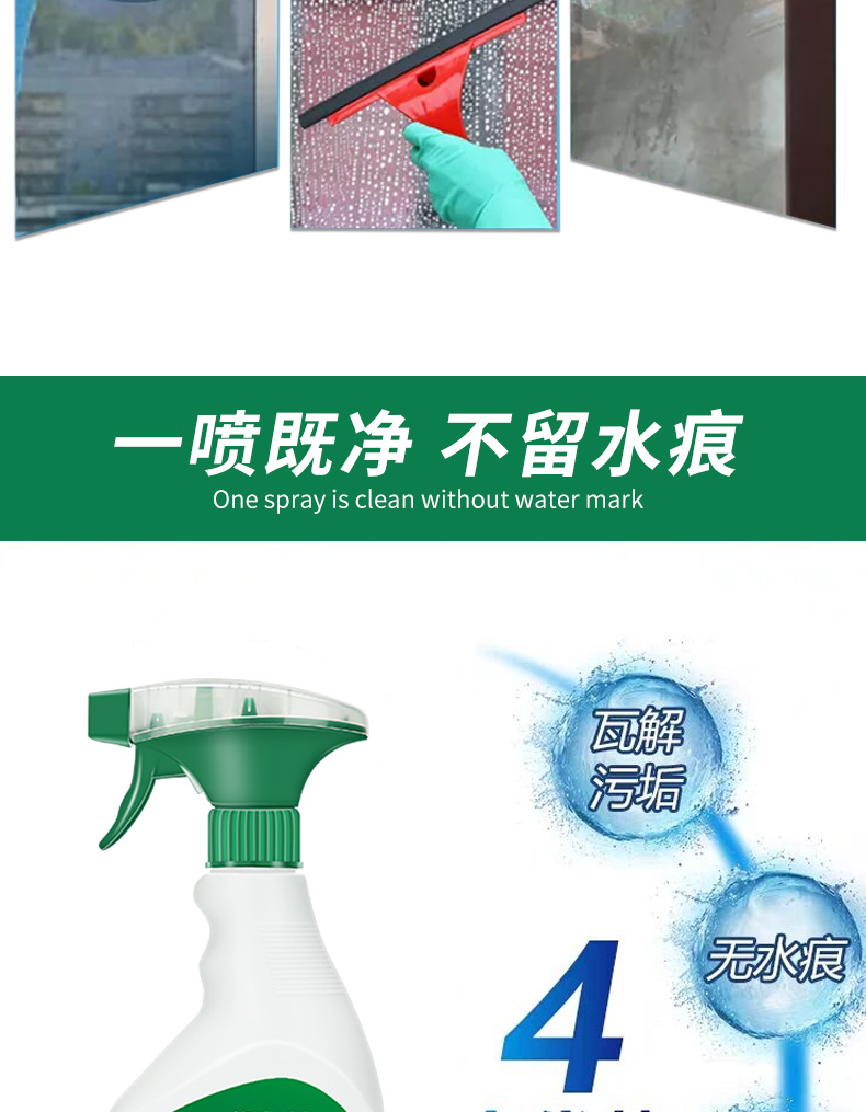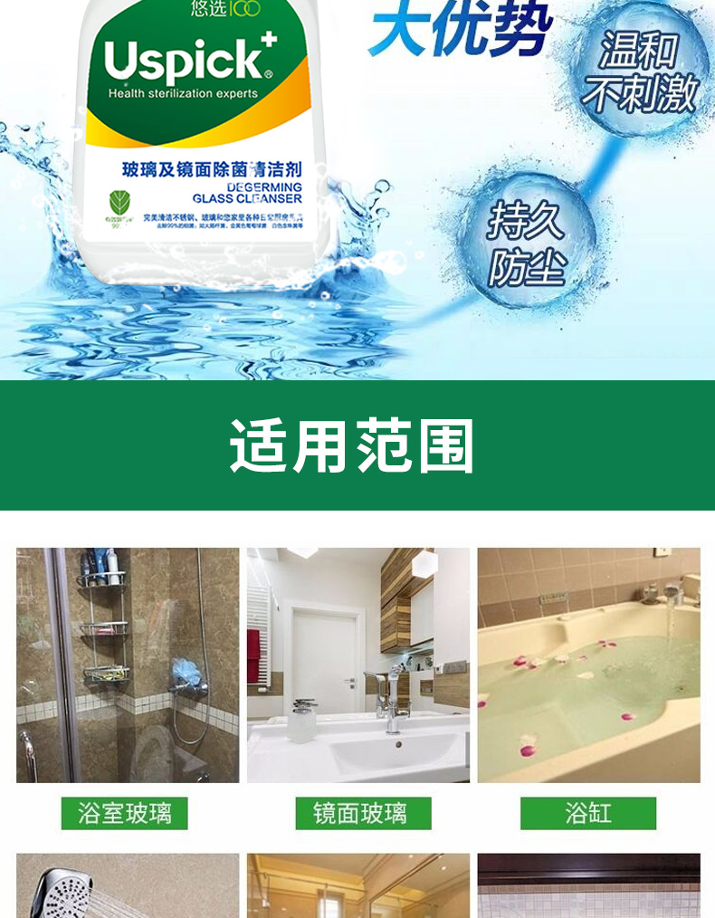 悠选Uspich+玻璃及镜面除菌清洁剂650ml/瓶 灰绿色
