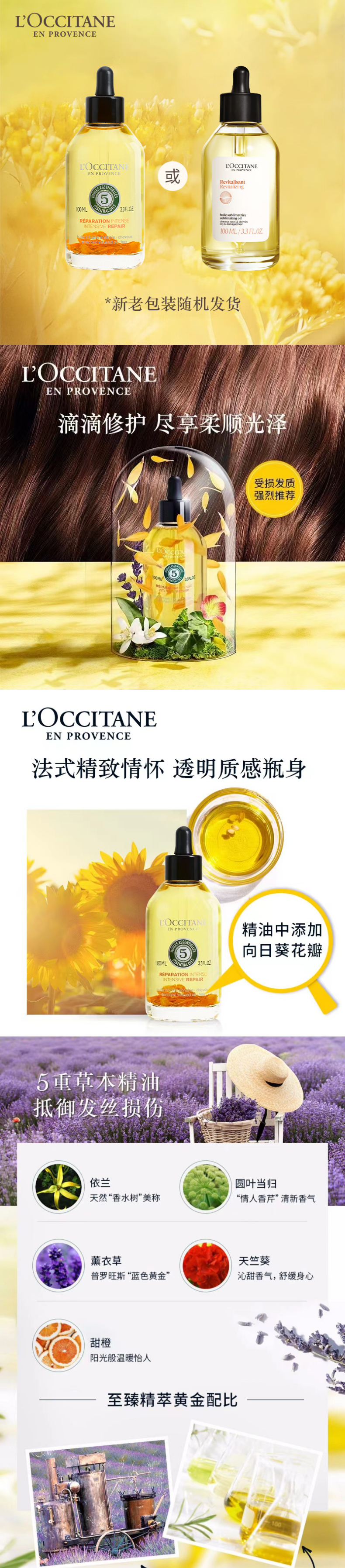 欧舒丹5合1草本菁纯修护精油100ml新老款随机发(单位:瓶) 鹅仔黄