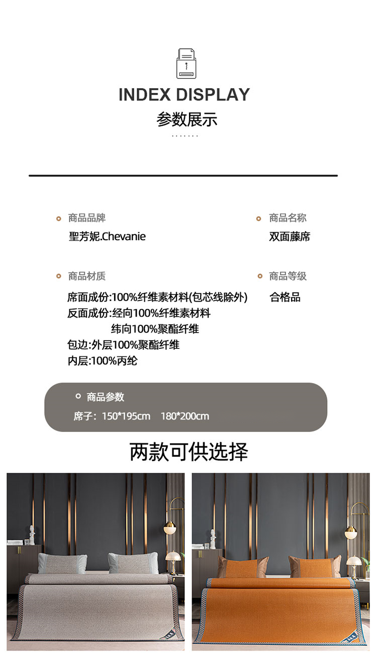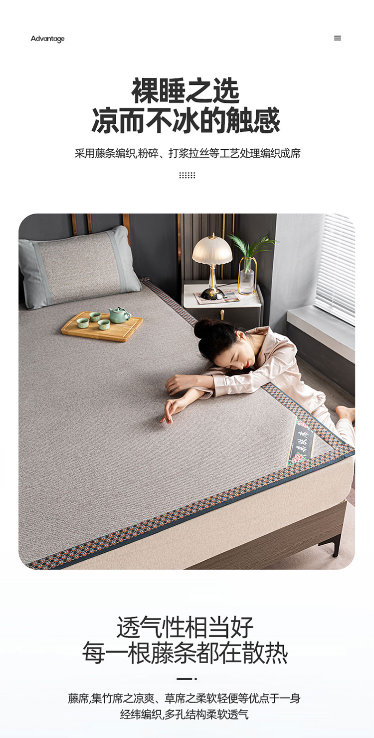 圣芳妮 舒爽冰藤席180*200cm 金咖棕