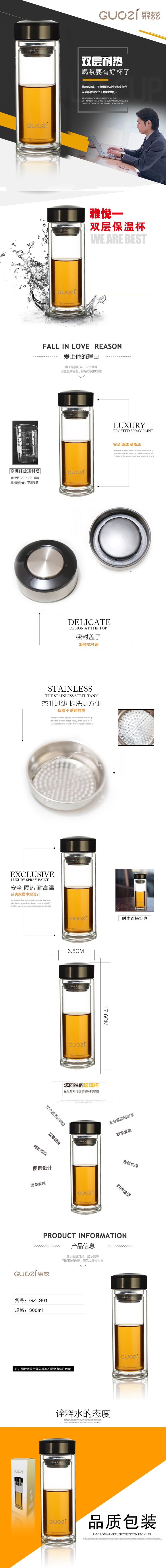 果兹雅悦双层保温杯GZ-S01(单位:个) 黑色