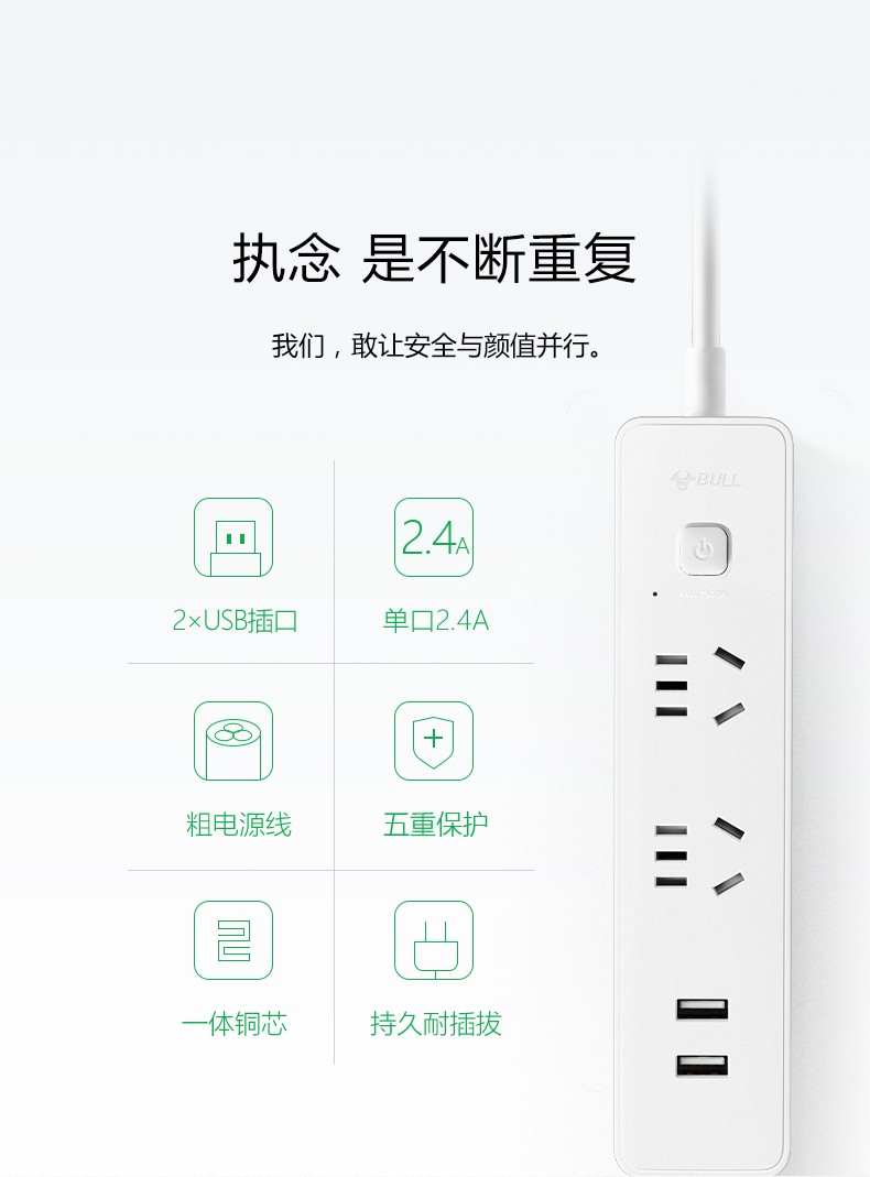 公牛(BULL) GNV-UUA122(新) 单控二联插座 带USB 1.5米 白色 (单位:个) 白色