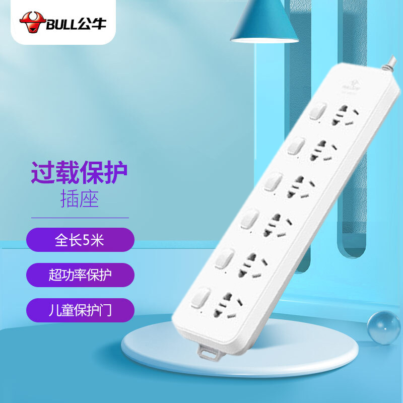 公牛(BULL) GN-313 排插 10A 250V 1.0m㎡5m导线 白色(单位:个) 白色