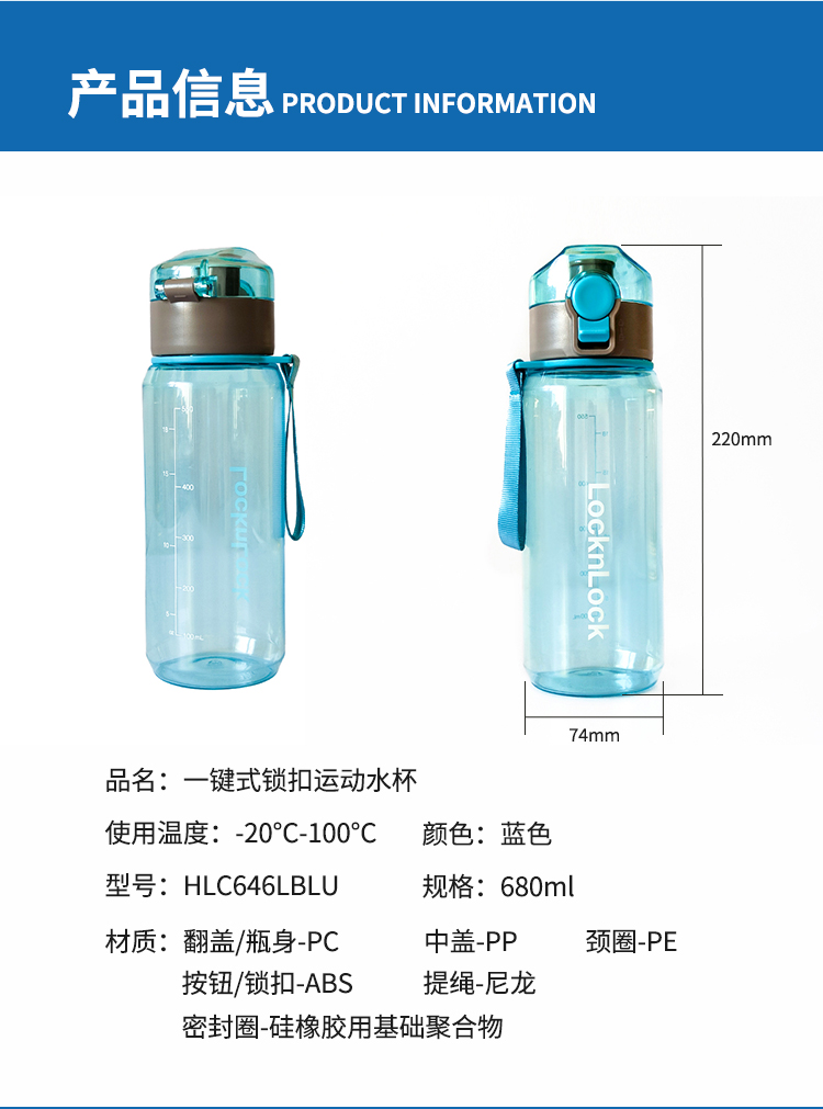 乐扣乐扣(LOCK&LOCK)一键式锁扣运动水杯HLC646L 蓝色