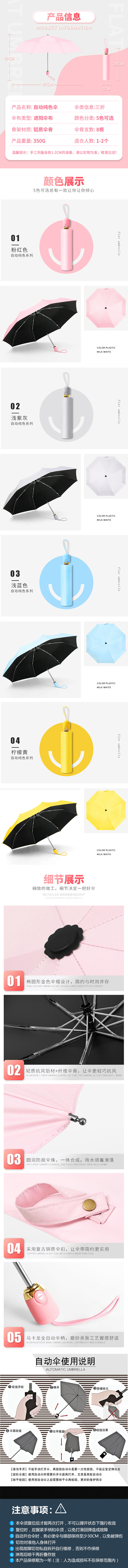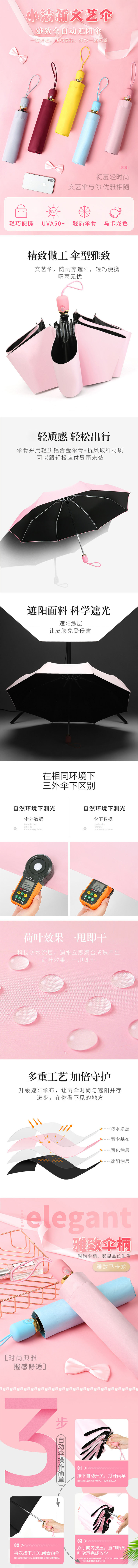 三极 TP7013 全自动晴雨黑胶遮阳伞 浅蓝色