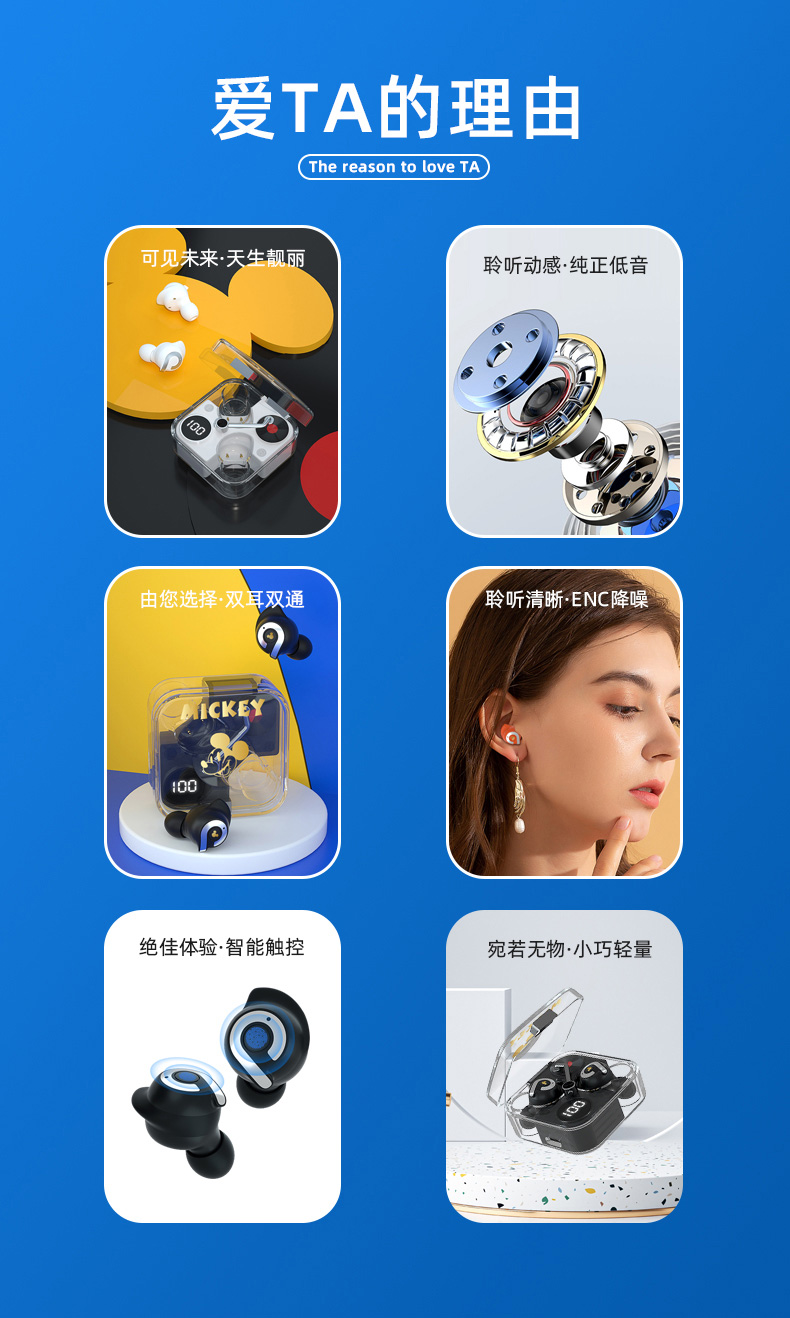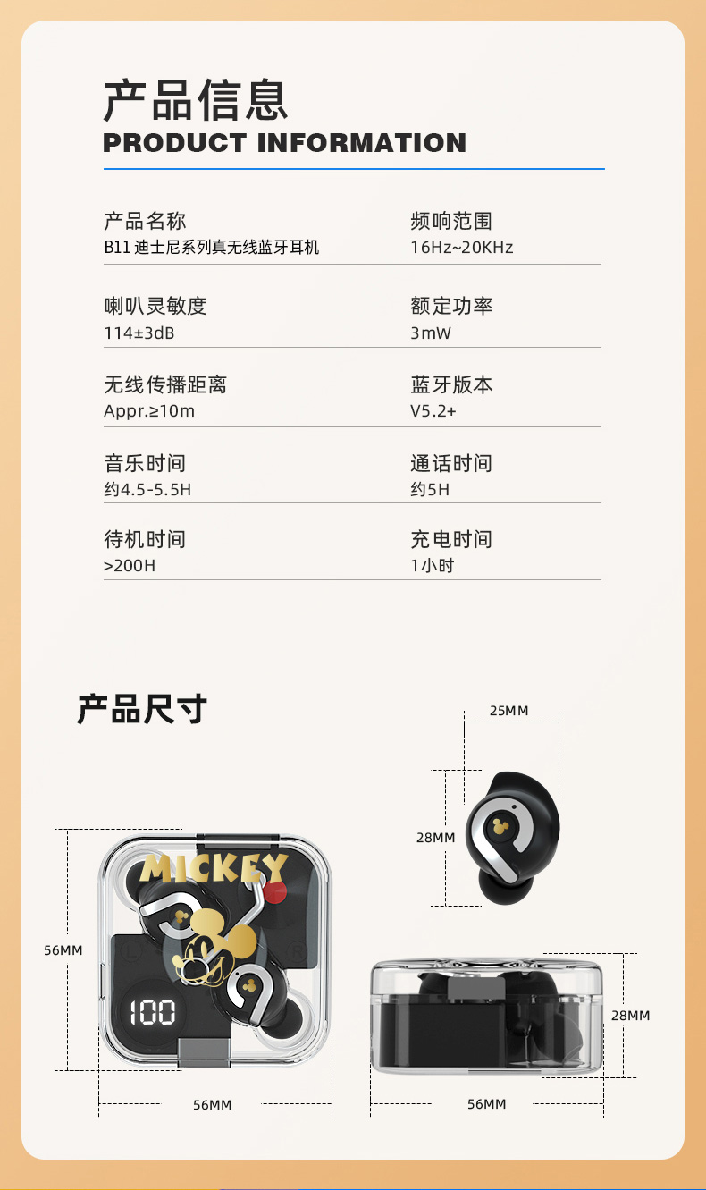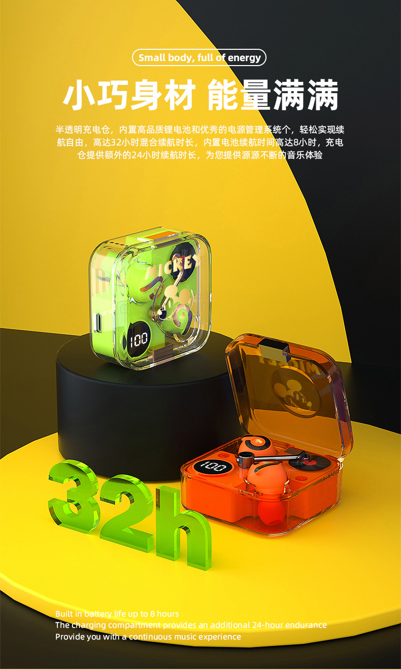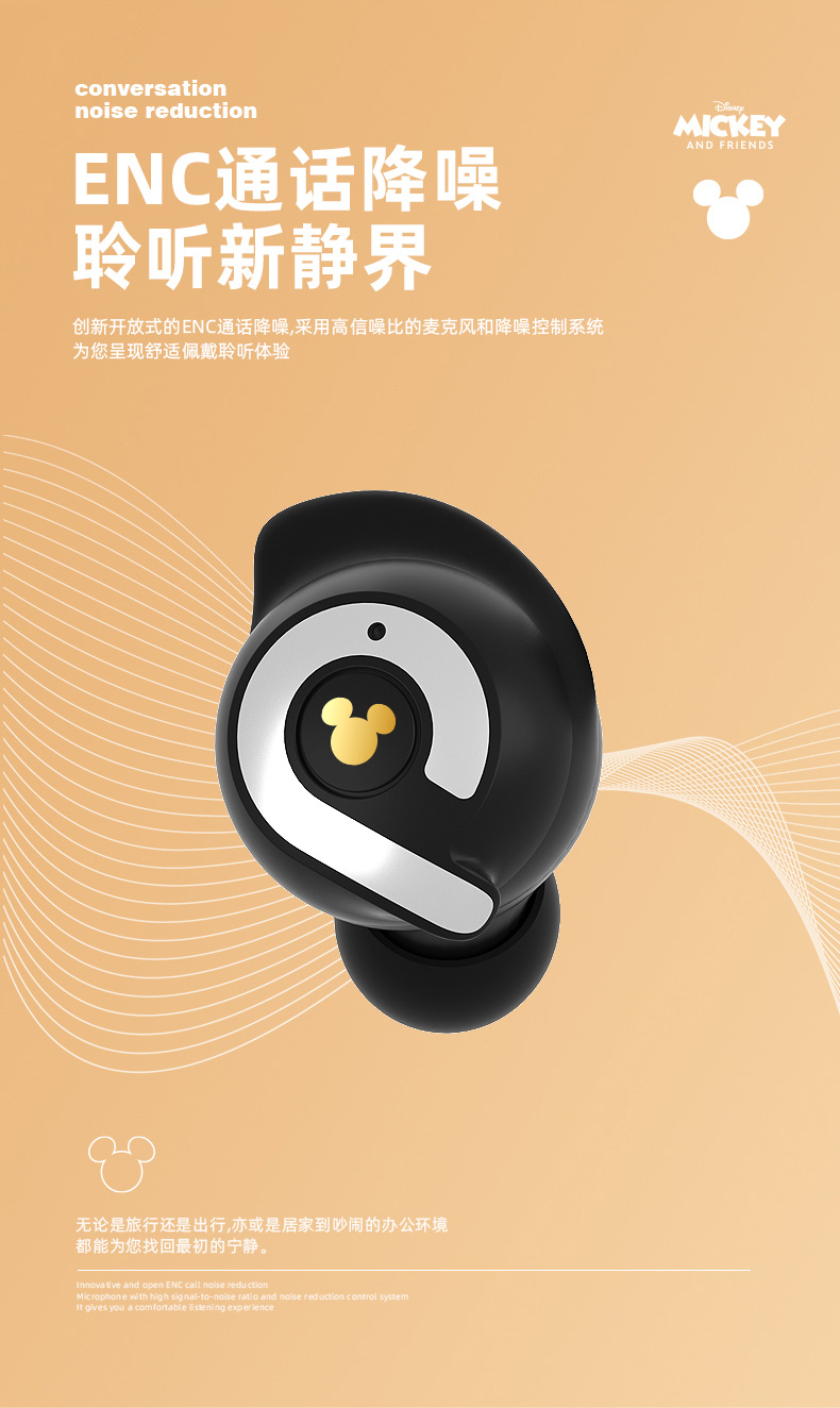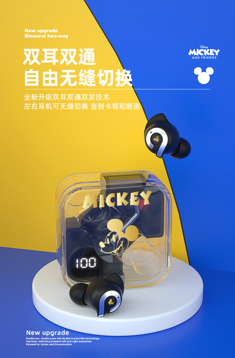 迪士尼蓝牙耳机真无线运动游戏降噪入耳式高音质苹果安卓通用 黑色